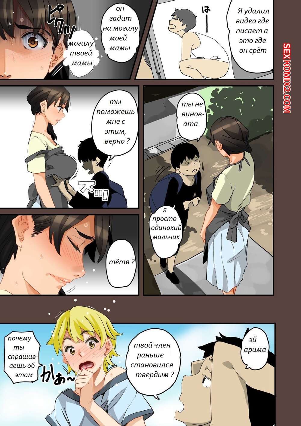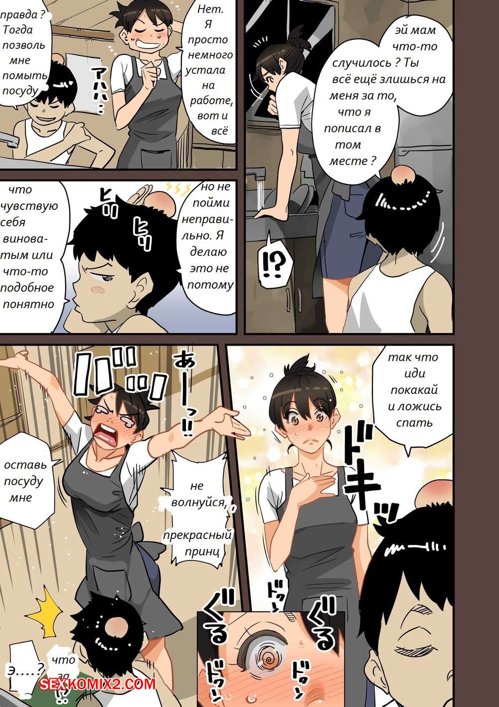 Порно комикс Полная деградация. Часть 1. Zenin Shikkaku. Hana Hook Сисястая милфа брюнетка была очень возбуждена и решила повеселиться со своим сыном. Красотка разделась и стала сосать большой хуй парня, после чего дала ему себя выебать.