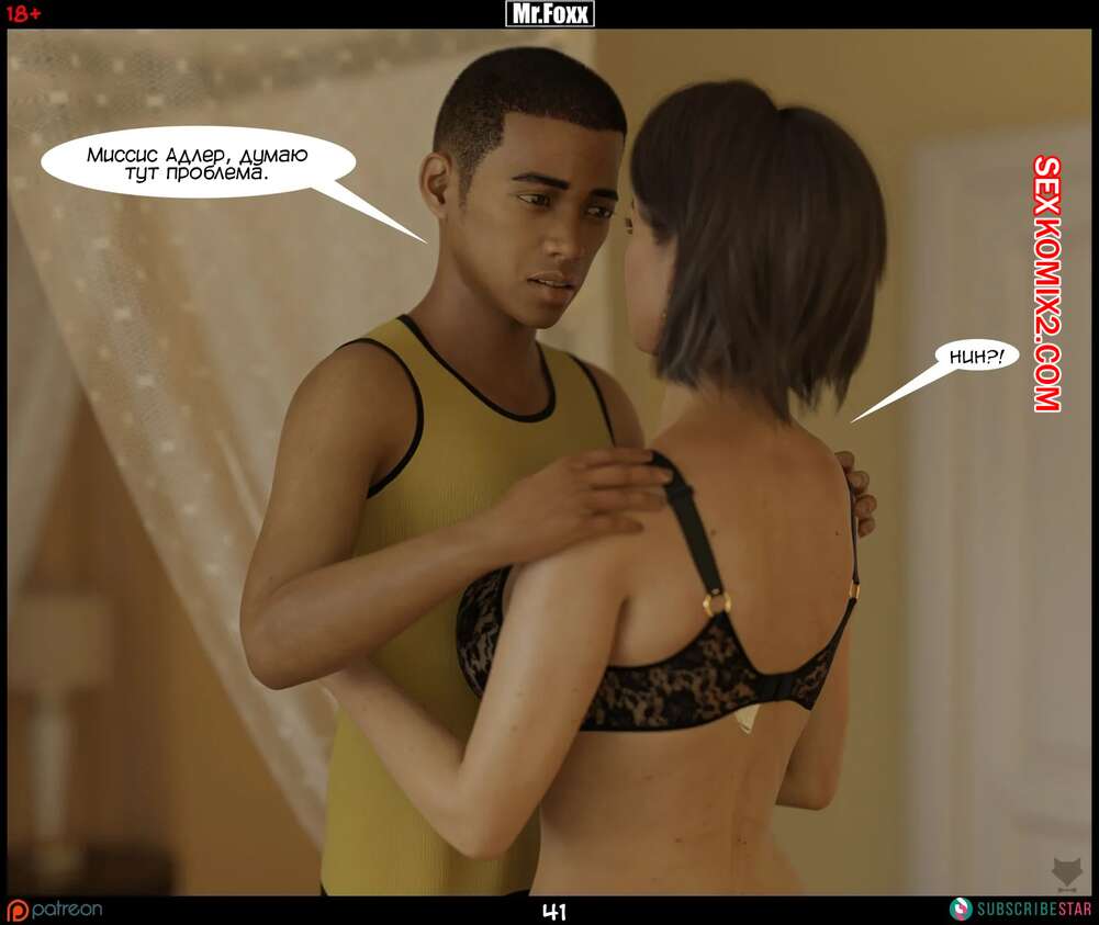 Порно комикс Дело мамы. Часть 2. Moms Affair. Mr.FOXX Темнокожий парень подсмотрел за красоткой милфой в ее спальне и очень возбудился. Он попросил красотку ему отсосать, а она не смогла ему отказать. Милфа отсосала большой хуй парня, после чего он кончил ей в ротик.
