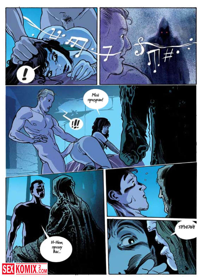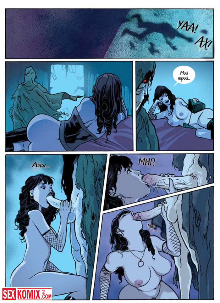 Порно комикс Ана Моргана. Парень трахал свою девушку брюнетку, но в их комнате появился страшный мужчина и прогнал парня. А потом трахнул девушку.