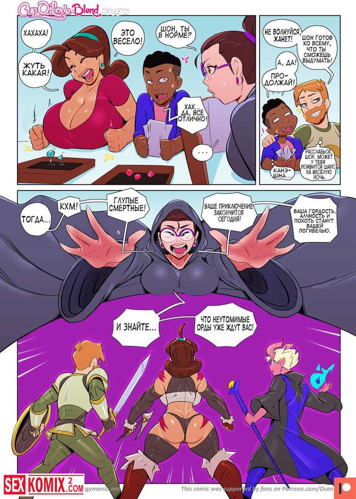 Порно комикс Кружка любви. Смесь. Компания друзей играют в фантастическую игру. И предела их фантазии просто нет, все что они навыдумывали в игре вы сможете увидеть в этом комиксе.