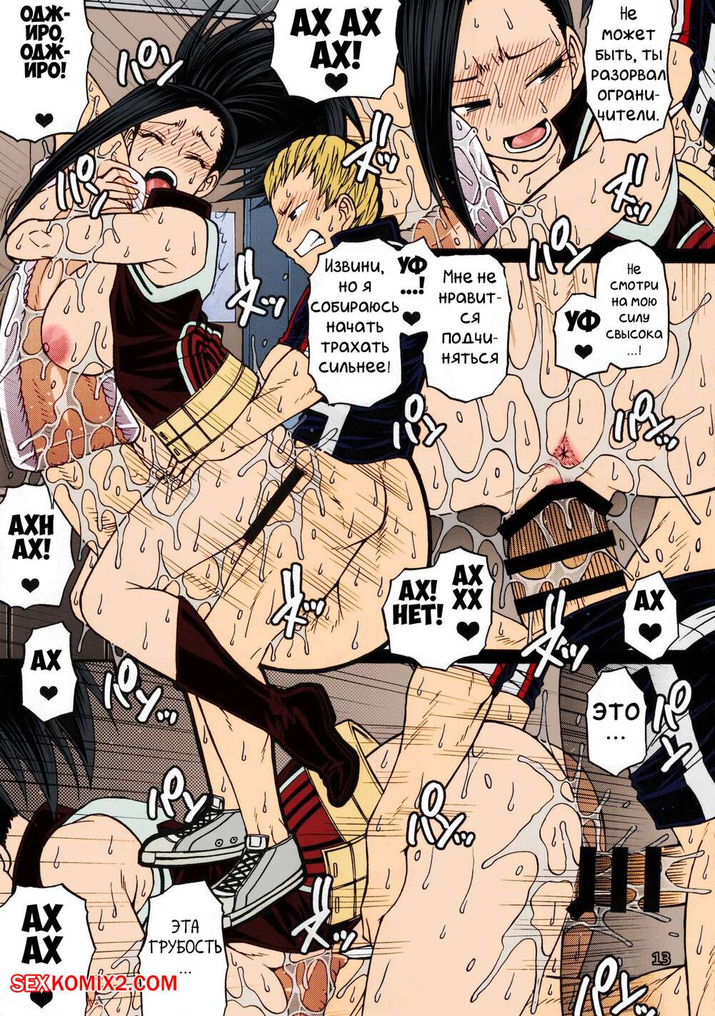 Порно комикс Boku no Hero Academia. Момо x Широ. CHIBA Toshirou Горячая сексуальная брюнетка была очень возбуждена и хотела трахаться. Она разделась перед своим дружком и стала сосать его большой хуй, после чего дала ему себя выебать.