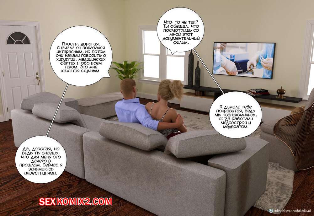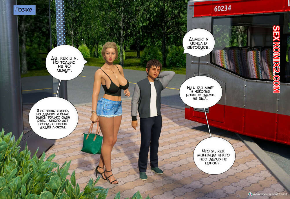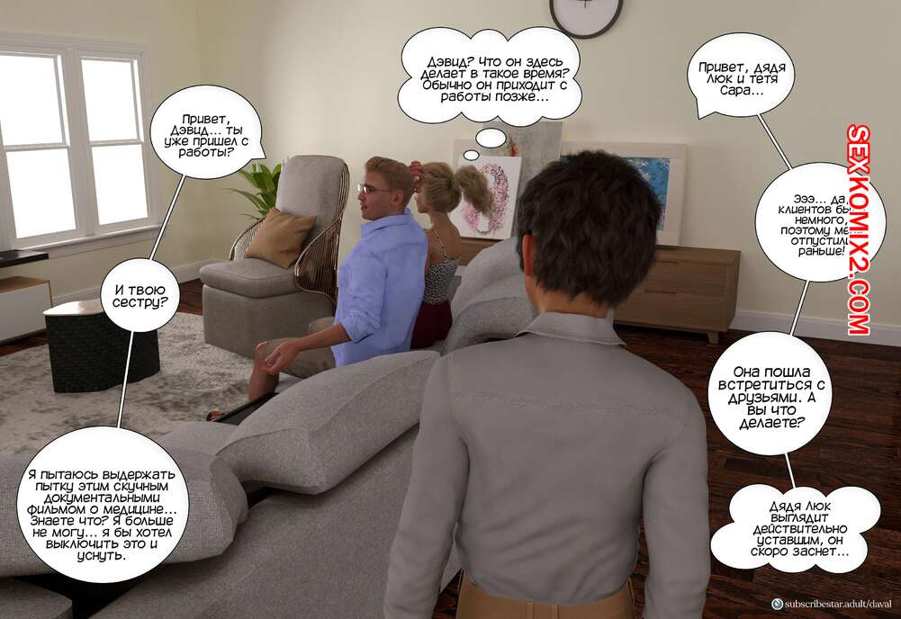 Порно комикс Вместе. Часть 3. Together. Daval3D Сисястая милфа осталась наедине со своим мужем и хотела потрахаться, но он уснул. К счастью красотки, домой с работы вернулся ее племянник, который позвал тетю в комнату, чтобы поебаться.