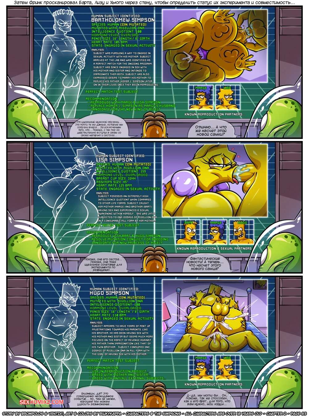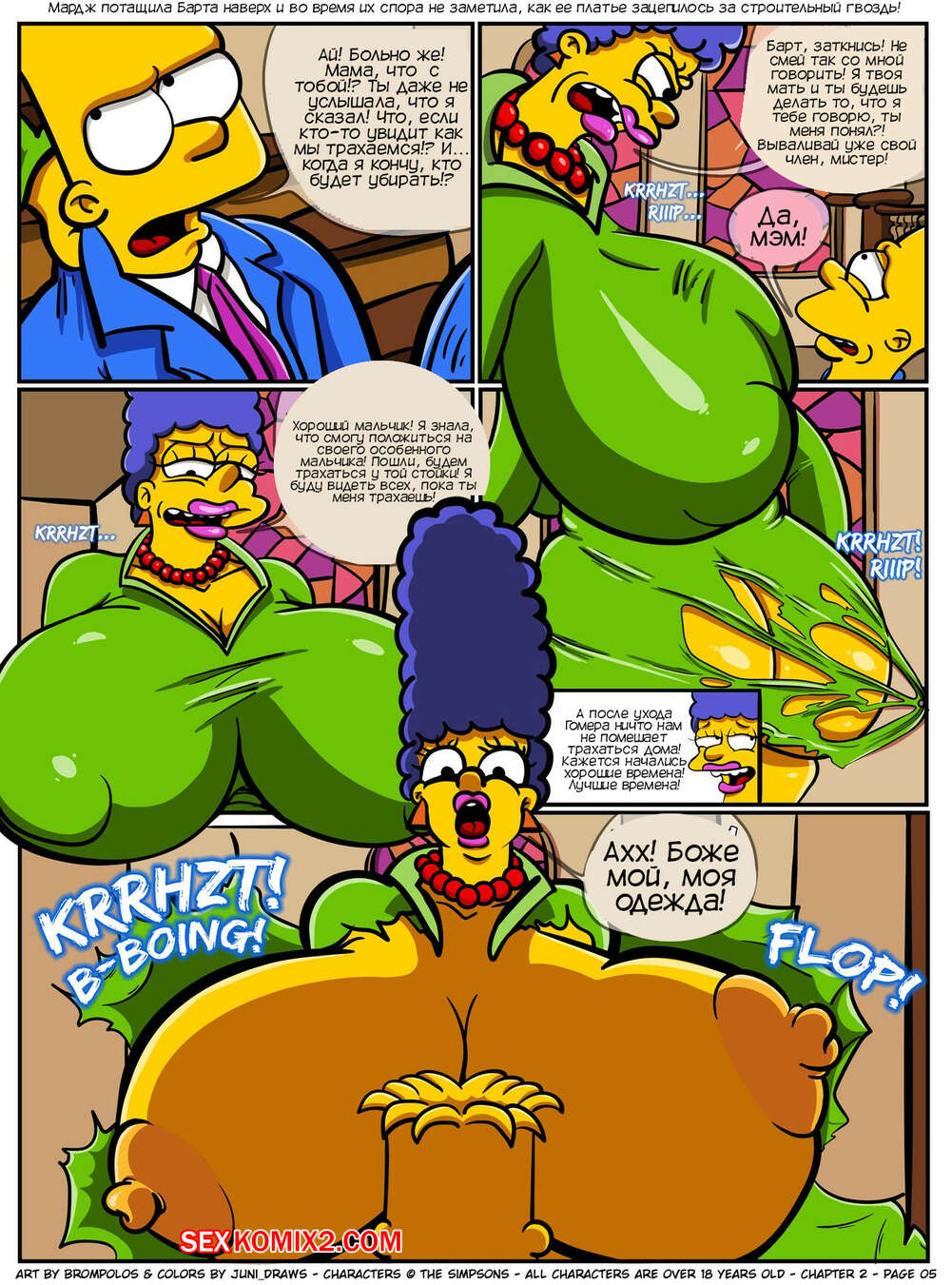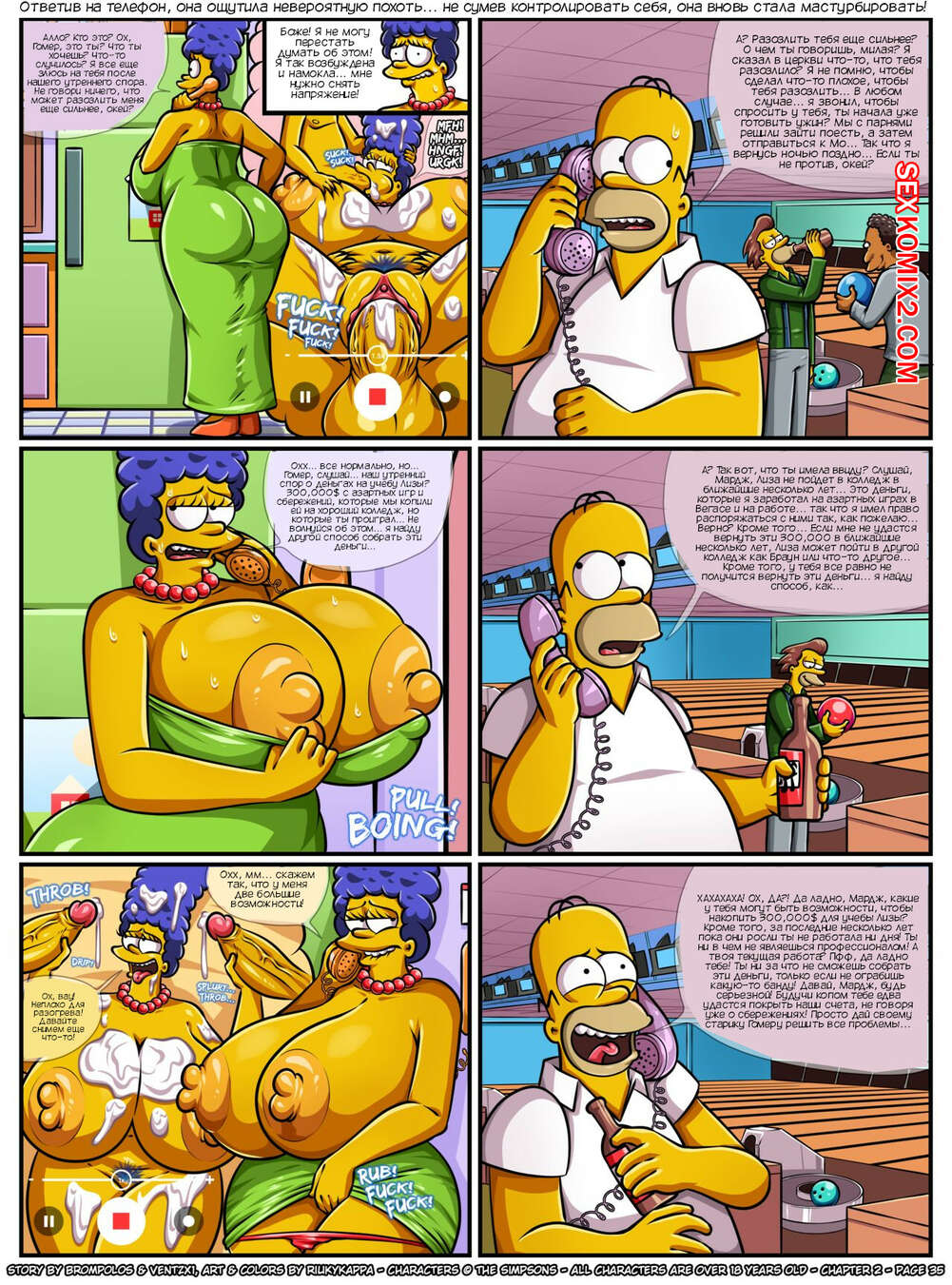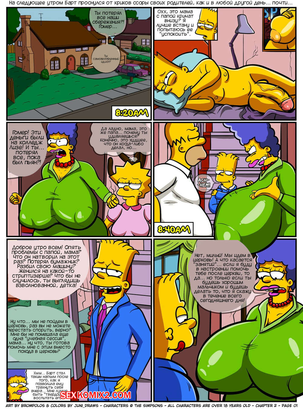 Порно комикс Симпсоны. Сексенштейны. Материнские семейные проблемы. Часть 2. Brompolos Сексуальная милфа Мардж отправилась со своей семьей в церковь. Там милфа невероятно возбудилась и позвала Барта уединиться, чтобы он ее хорошенько выебал и доставил ей огромное удовольствие.