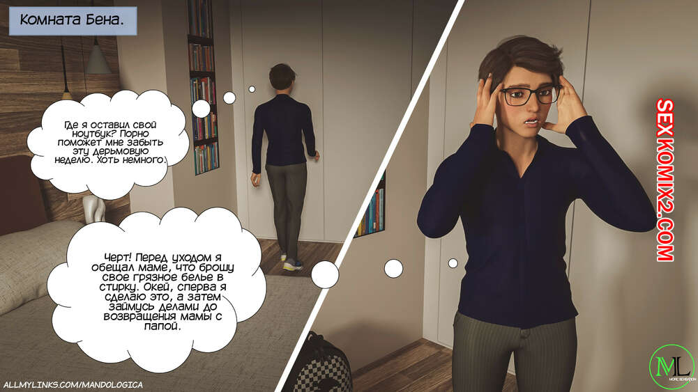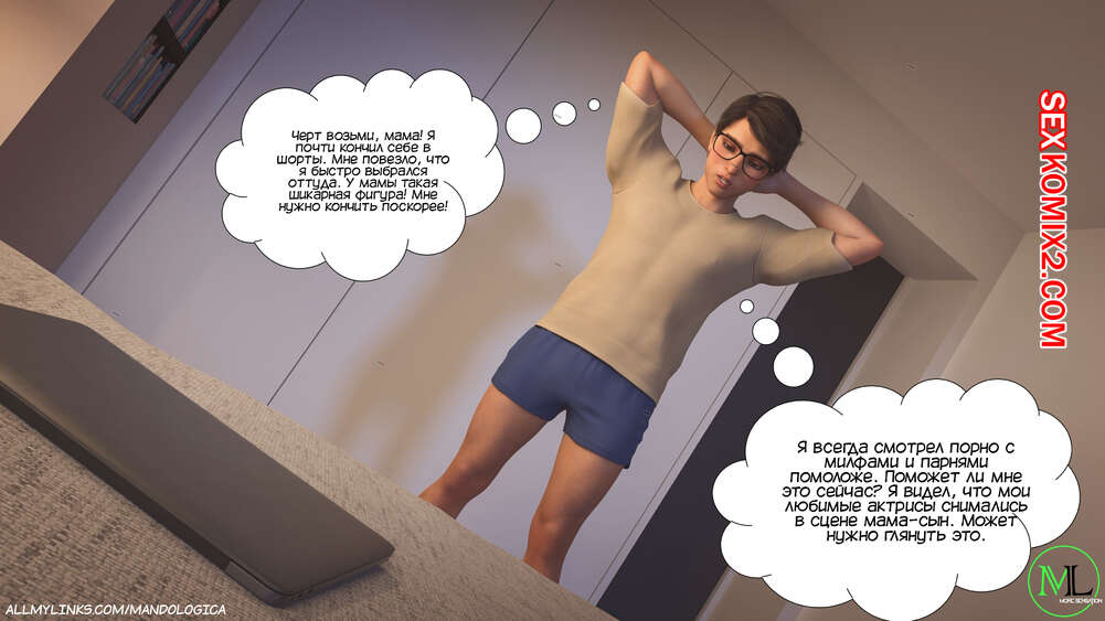 Порно комикс Запретное пламя. Часть 1. Forbidden Flames. MandoLogica Молодой парень Бен вернулся домой со школы и решил подрочить, пока его родителей нет дома. Парень нашел белье свое мамы и не смог удержаться от соблазна подрочить, пользуясь трусиками мамы.