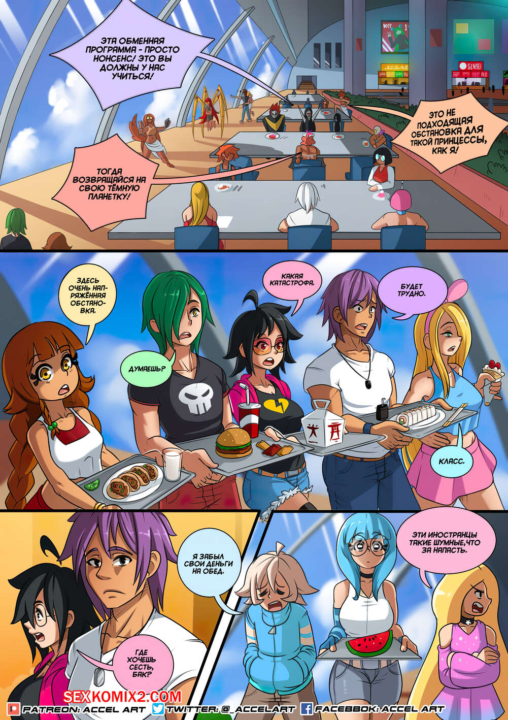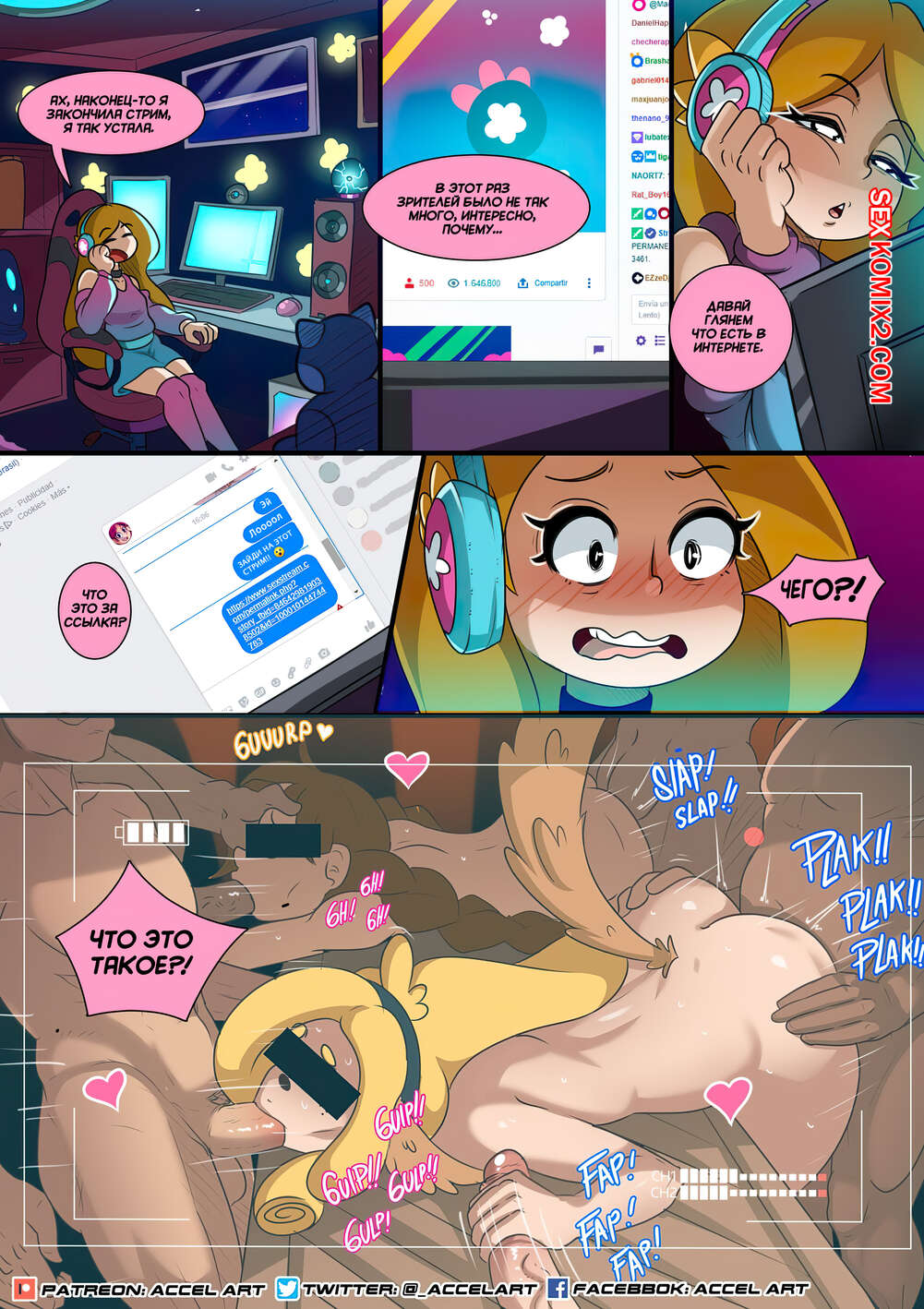 Порно комикс Истории Акси. Часть 3. Сексстрим. Accel Art Горячие сексуальные красотки были очень возбуждены и решили устроить шоу в прямом эфире. Красотки разделись и стали сосать большие хуи парней, после чего дали им себя выебать.