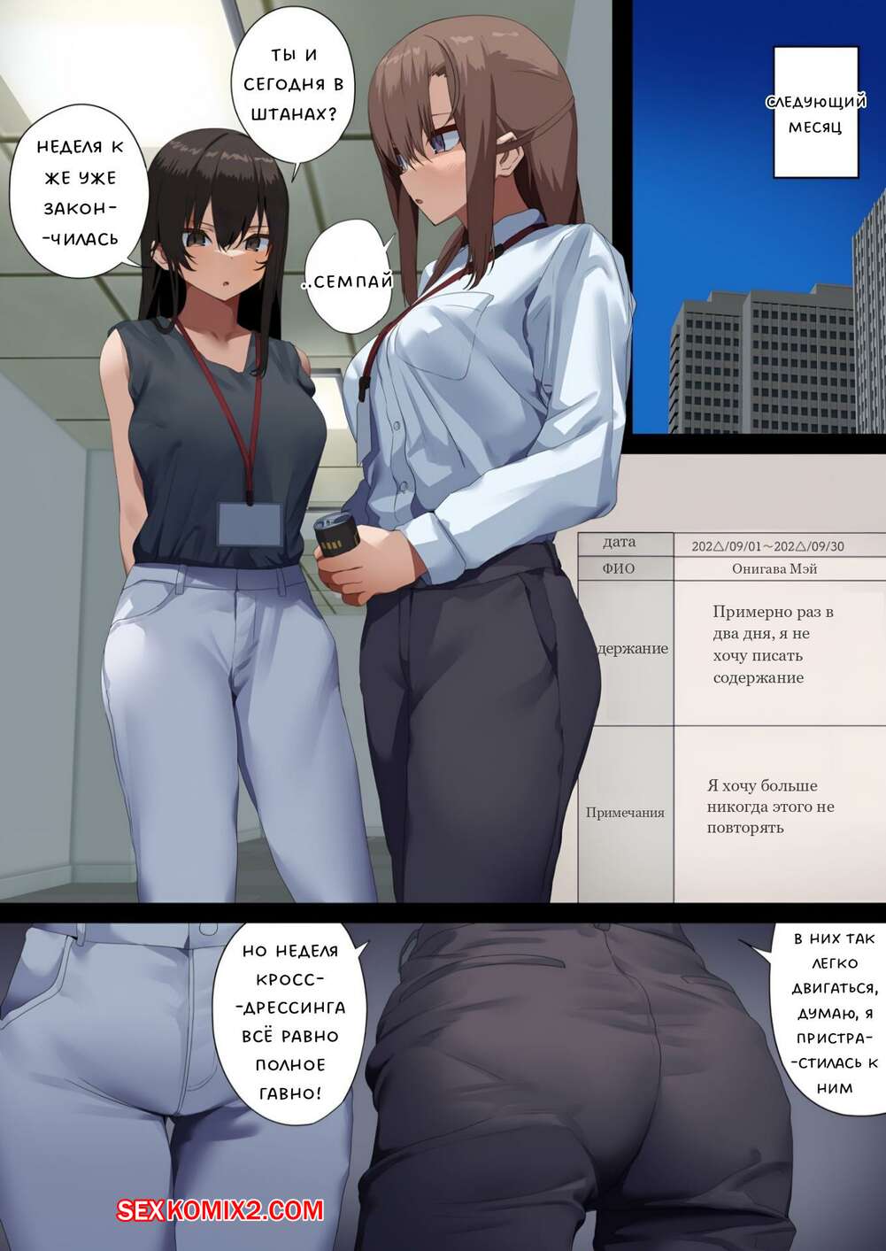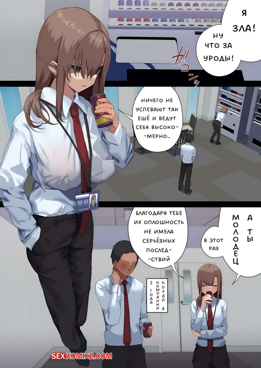 Порно комикс Манеры делового секса. Неделя К. Illumination Сексуальная брюнетка была очень возбуждена на работе в офисе и решила повеселиться со своими коллегами. Девушка разделась и отсосала большие хуи парней, после чего дала им себя выебать.
