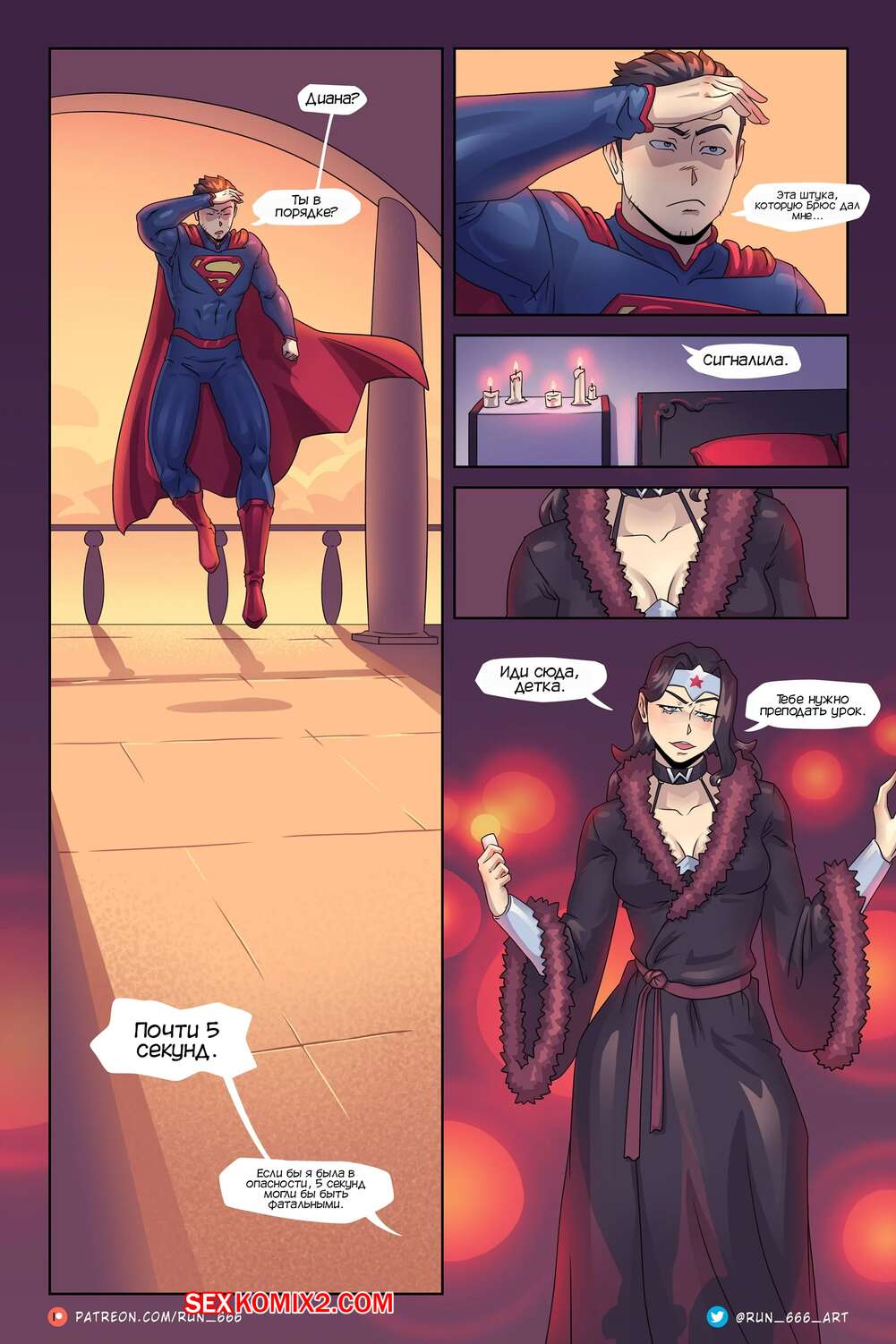 Порно комикс Чудо женщина. Изгиб стали. Bending Steel. Wonder Woman. Run 666 Сексуальная брюнетка ЧудоЖенщина вызвала к себе Супермена, чтобы повеселиться с ним. Она связала его и стала отсасывать его большой хуй, после чего дала ему себя выебать и кончить в нее.