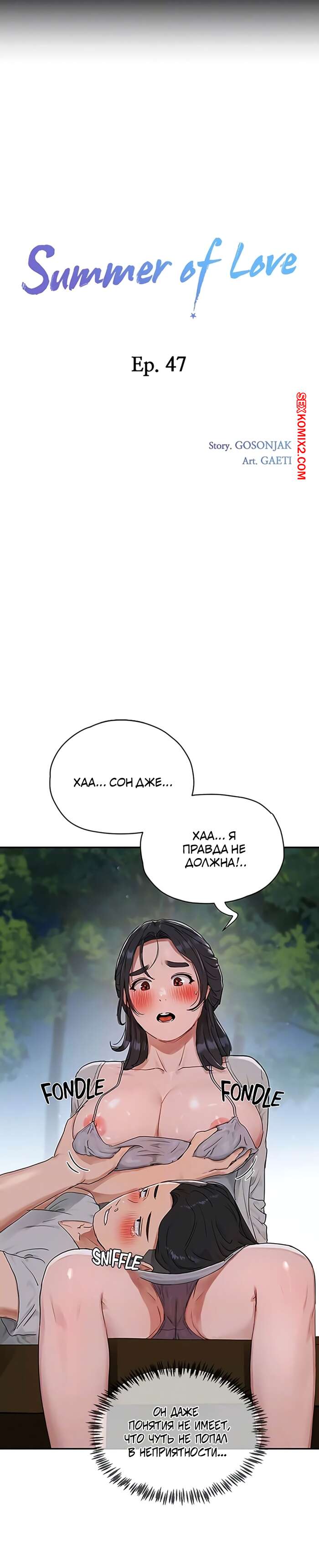 Порно комикс Летняя пора. Части 46 и 47. Summer time Горячая сисястая брюнетка была очень возбуждена и хотела трахаться. Она разделась перед своим дружком и стала сосать его большой хуй, после чего дала ему себя выебать.