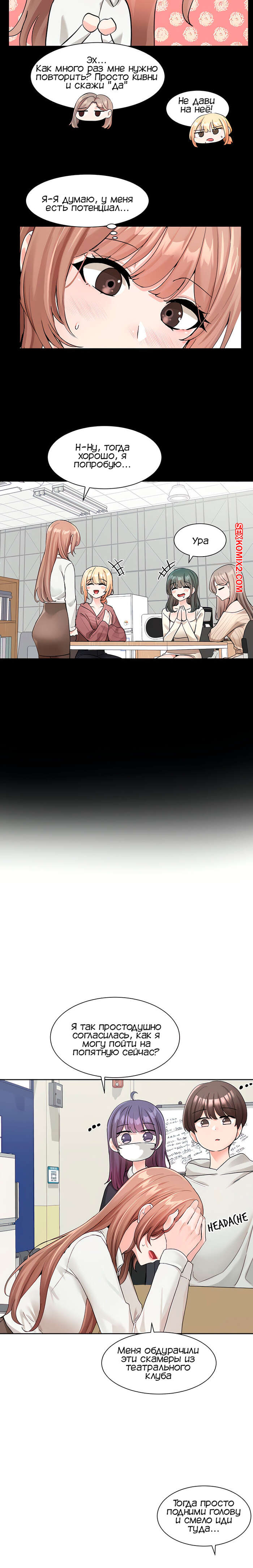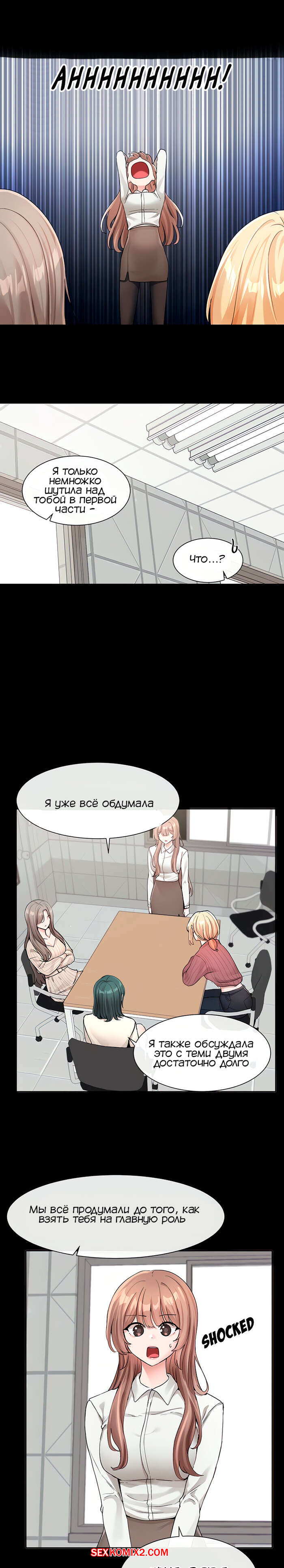 Порно комикс Театральный клуб. Часть 120. Circles. Theater cociety Горячие девушки собрались в школьном кабинете, чтобы обсудить свои дела. Между красотками началась дискуссия, которую они увлеченно развивали.