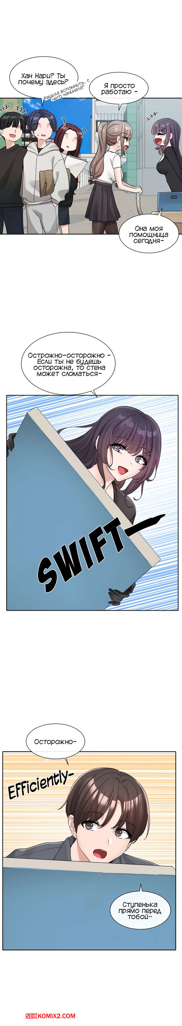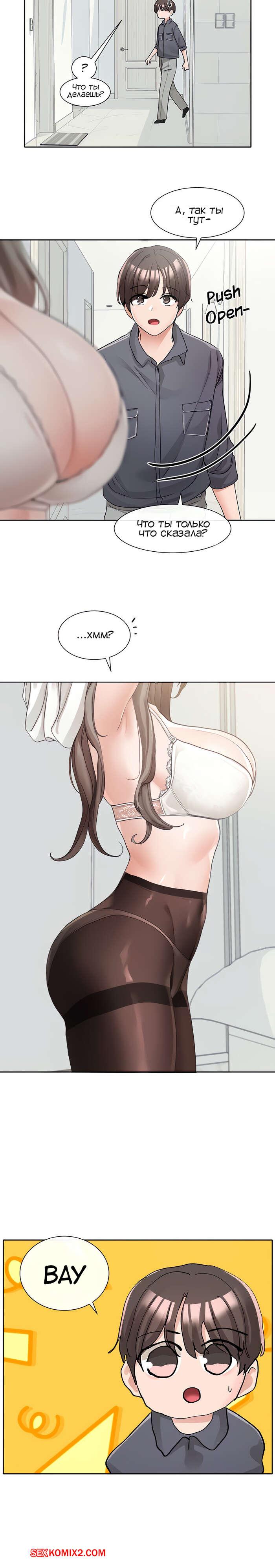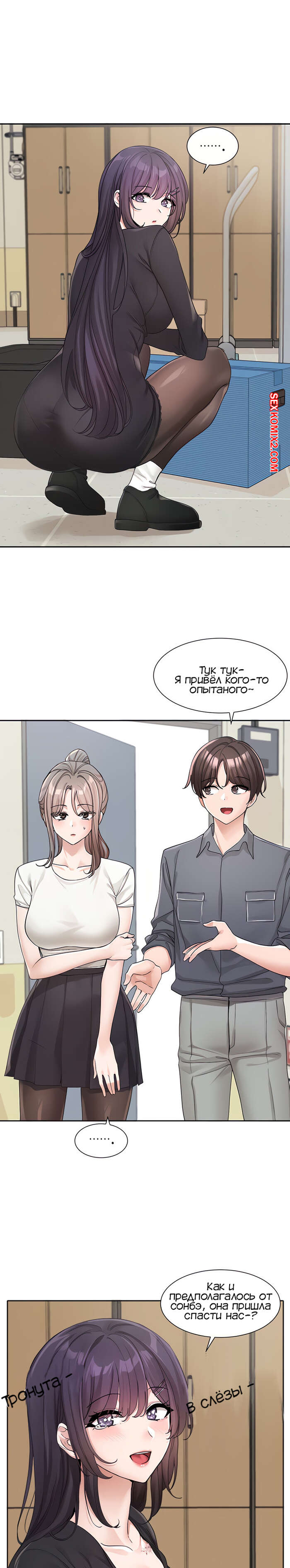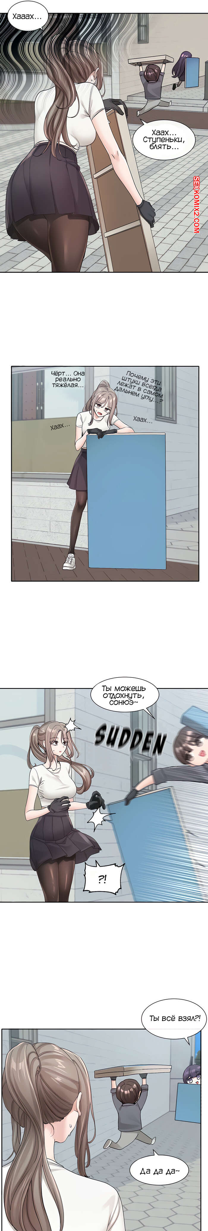 Порно комикс Театральный клуб. Часть 122. Circles. Theater cociety. После репетиции все разошли, остался только ГГ со своей подругой. Он тоже хотел уйти, но девушка его остановила, чтобы поговорить с ним. Парень начал попет после это начала разговора.