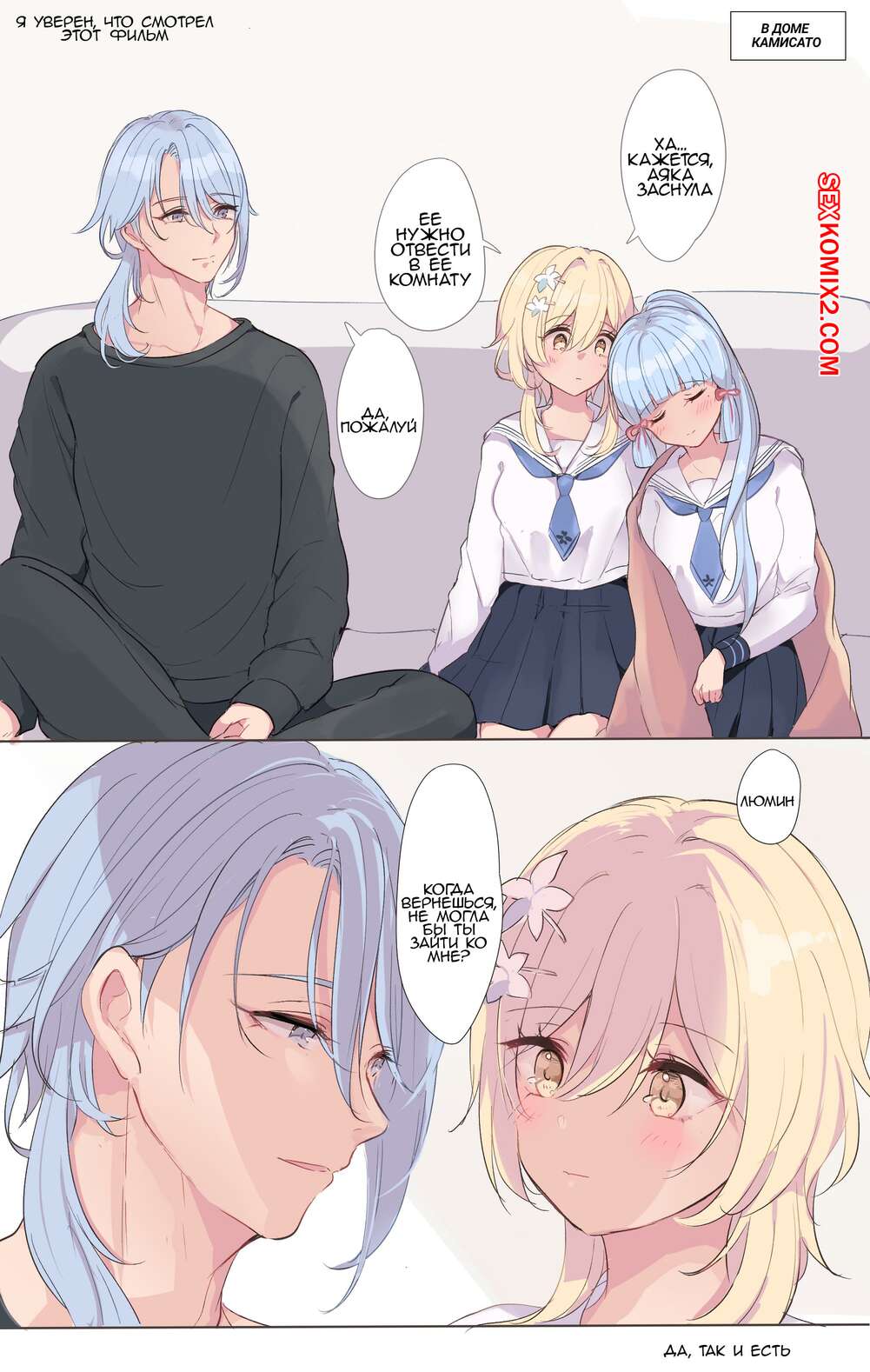 Порно комикс Genshin Impact. Аято Сан, могу я остаться сегодня вечером. Часть 2 Горячая сексуальная блондинка была очень возбуждена и хотела трахаться. Она разделась перед своим дружком и отсосала его большой хуй, после чего дала ему себя хорошенько выебать.