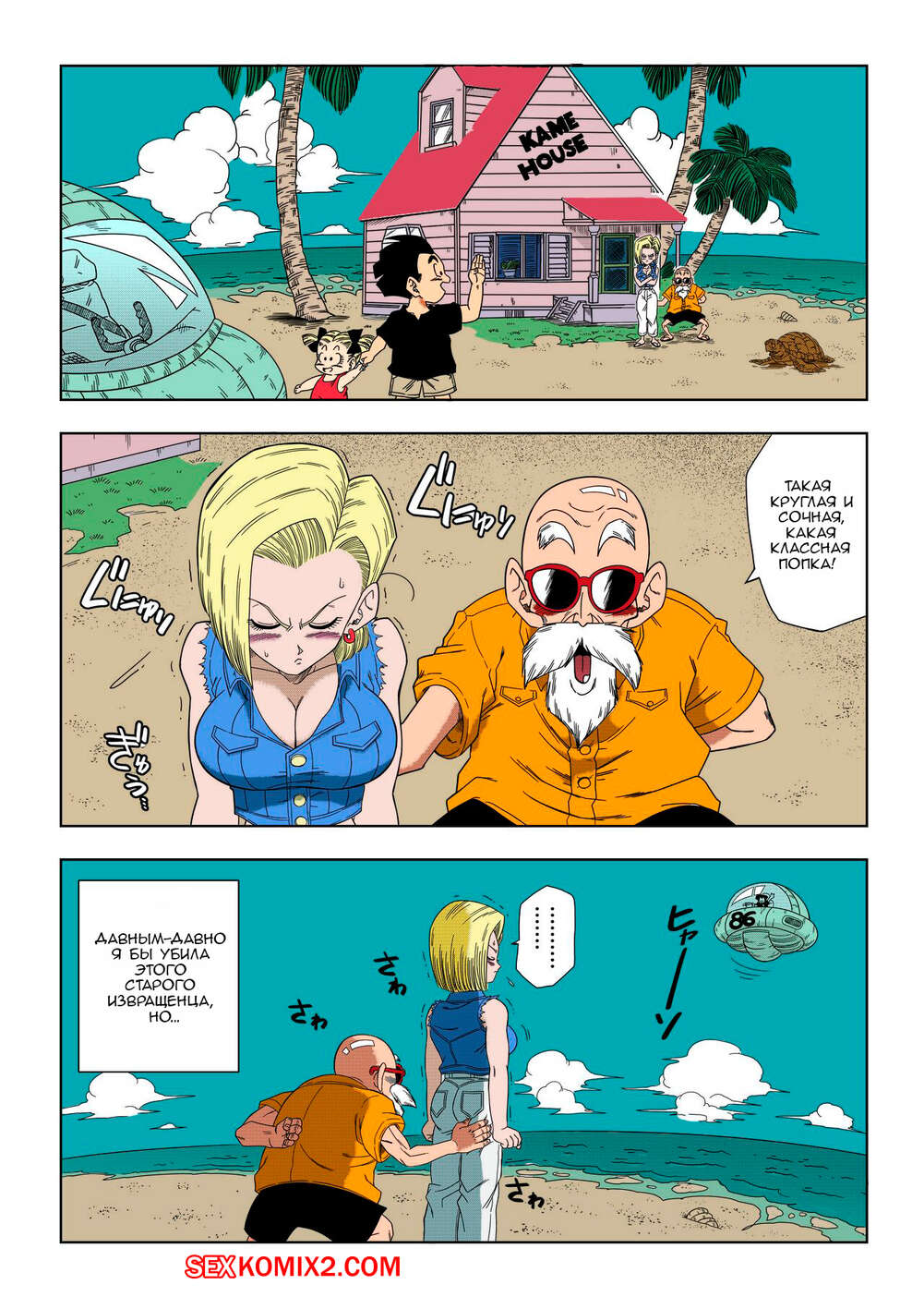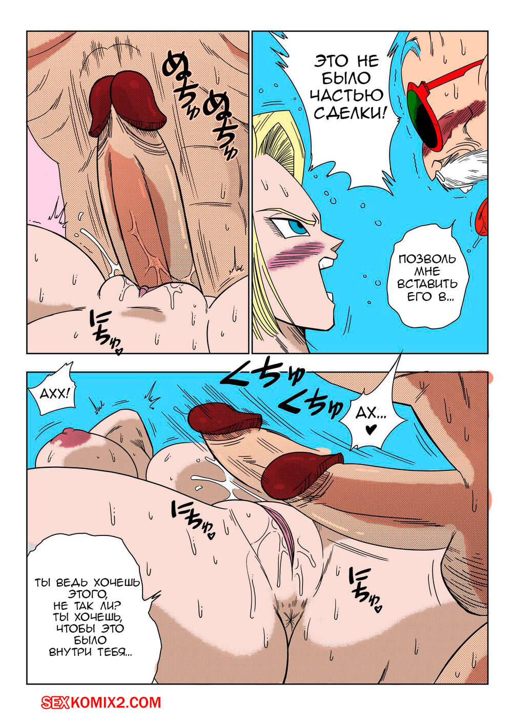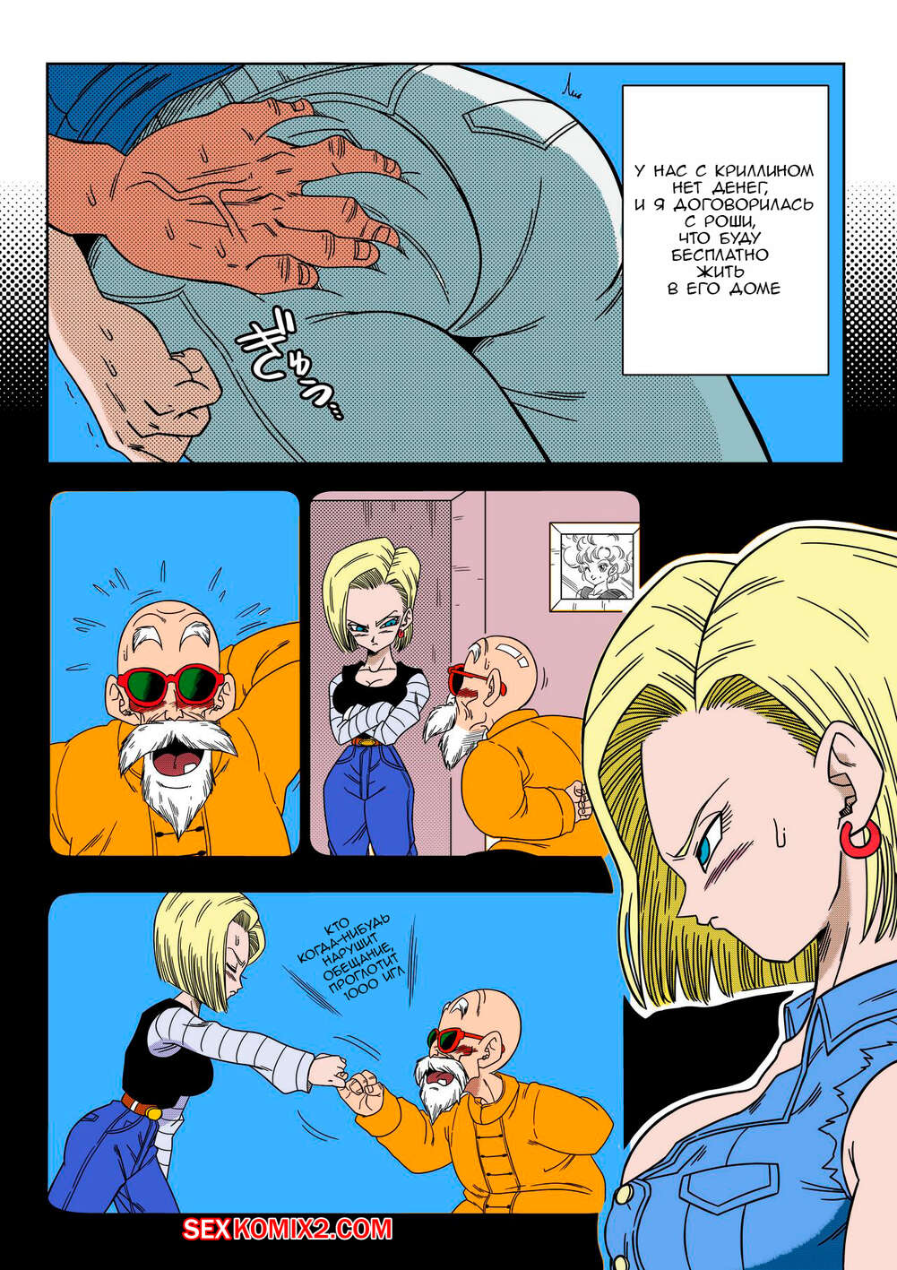 Порно комикс Dragon Ball Z. Андроид 18 против Мастера Роши. Yamamoto Сексуальная блондинка Андроид 18 была очень возбуждена и решила повеселиться со стариком. Она разделась и отсосала его большой хуй, после чего дала ему себя выебать.