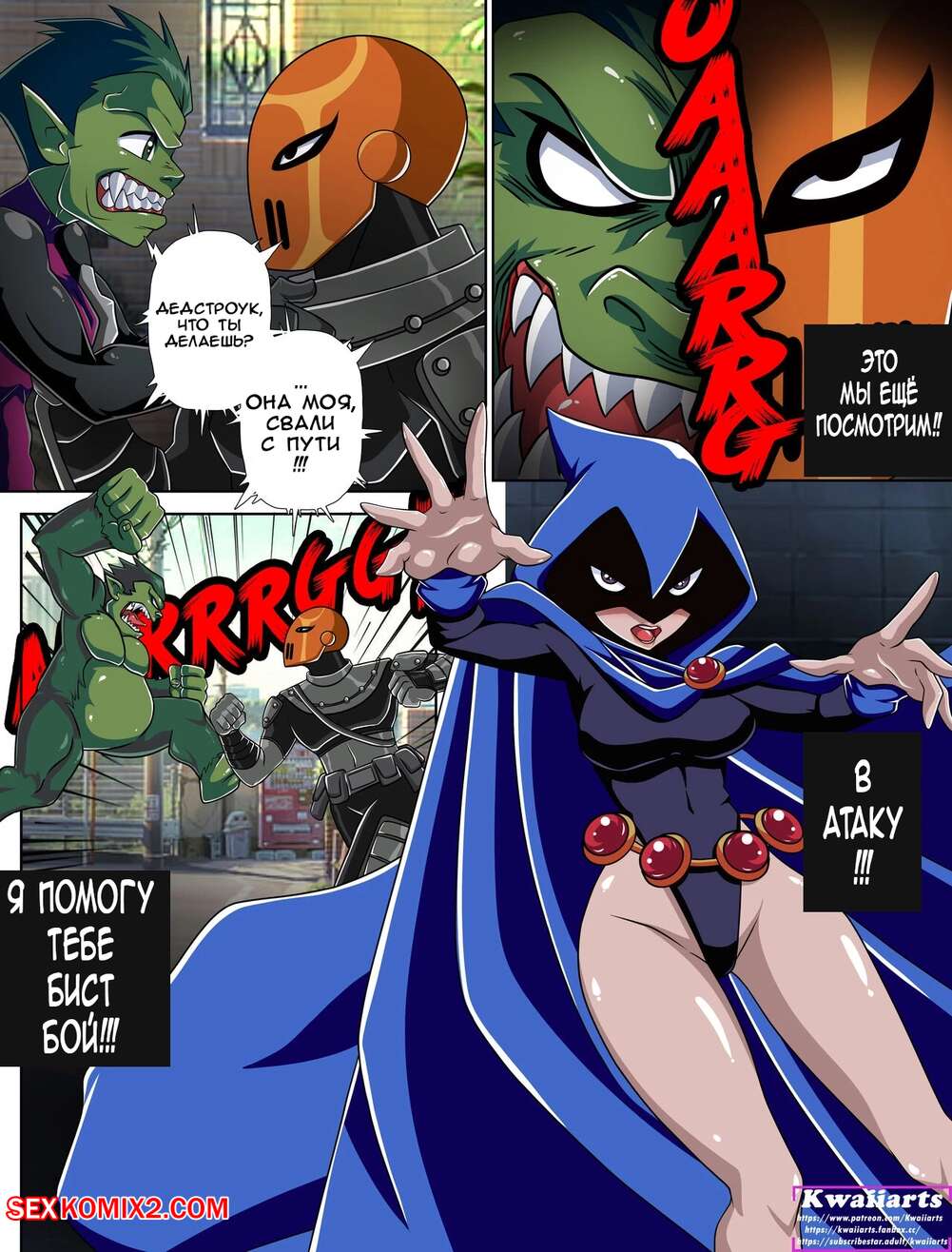 Порно комикс Teen Titans. Горячие титаны. Hot Titans. Kwaiiarts. Парень зверь спас Рейвен от Дэфстроука и решил получить награду от красотки. Он раздел девушку и хорошенько выебал красотку, совсем потеряв над собой контроль.