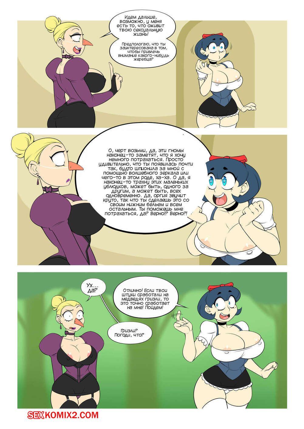 Порно комикс Белошлюшка. Ho White. BluntKatana Злая сексуальная ведьма узнала, что в лесу живет девушка красивее нее. Это оказалась Белошлюшка, которая обожает трахаться, но у нее давно не было секса. Ведьма отправилась к ней, чтобы устранить соперницу.