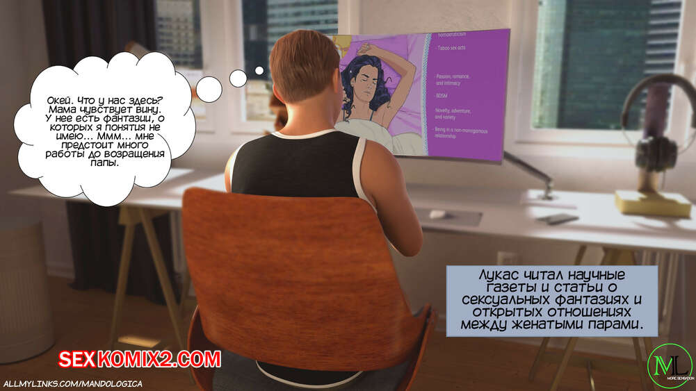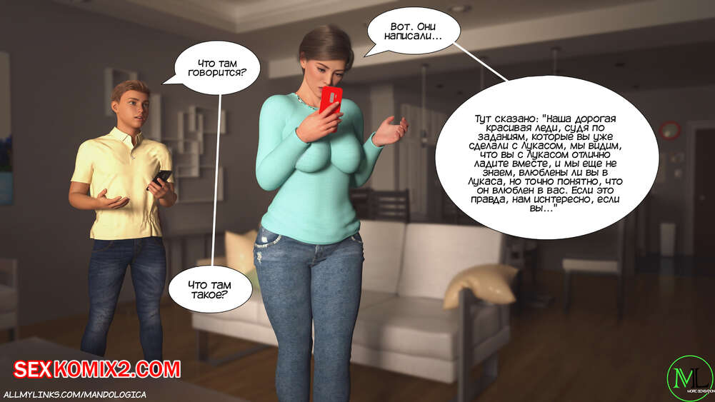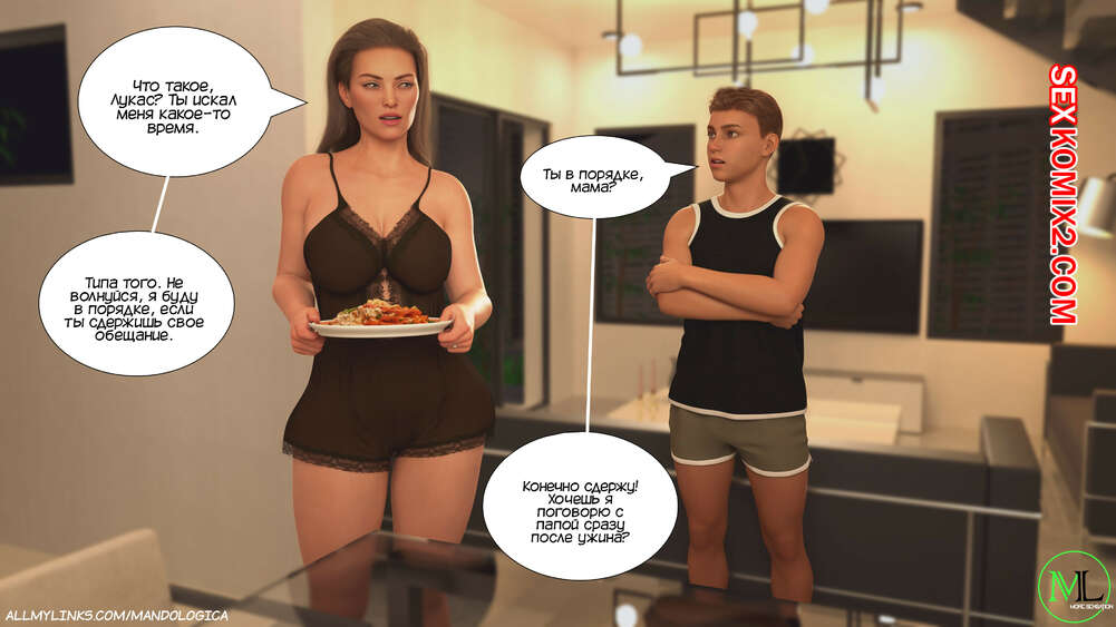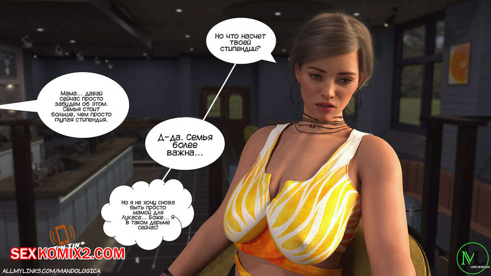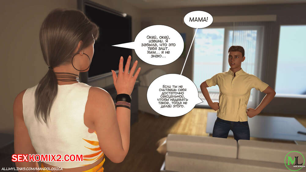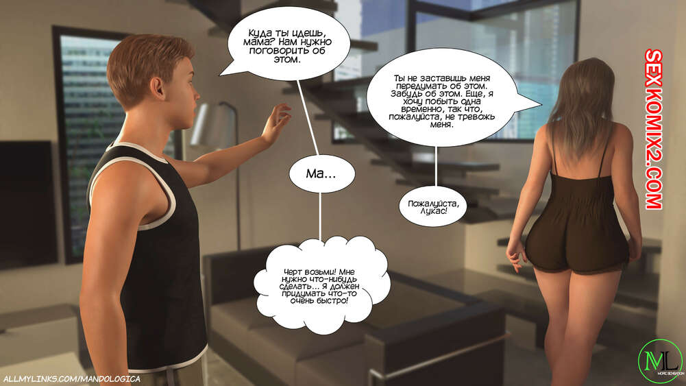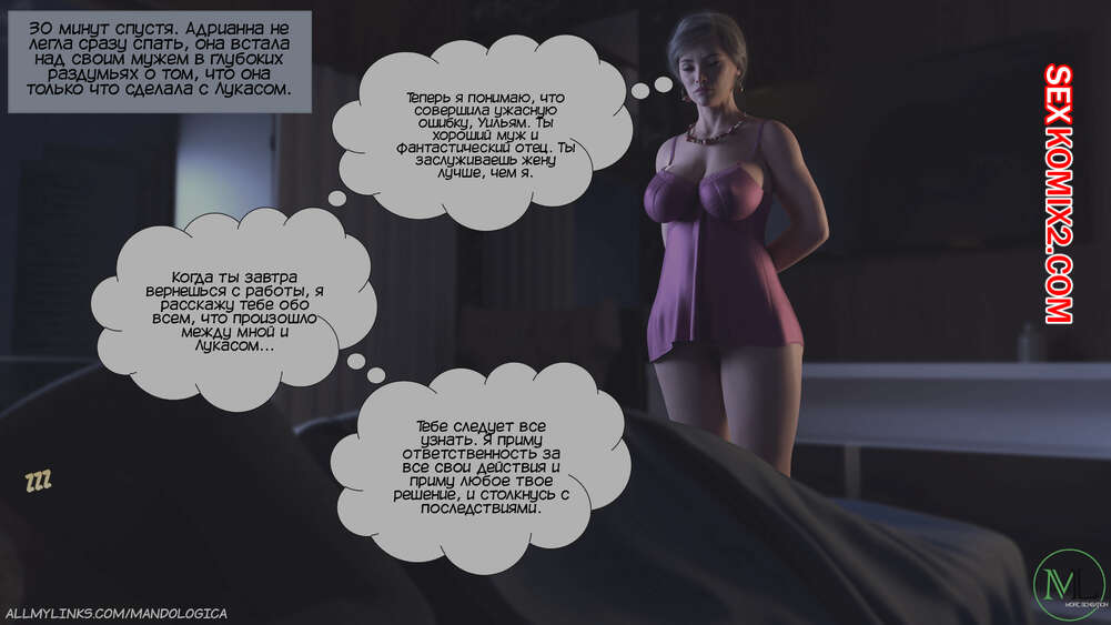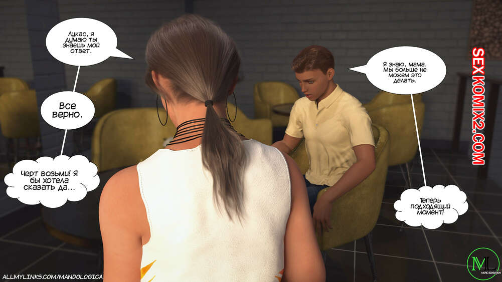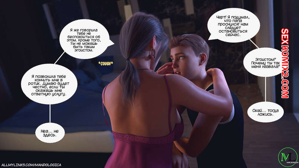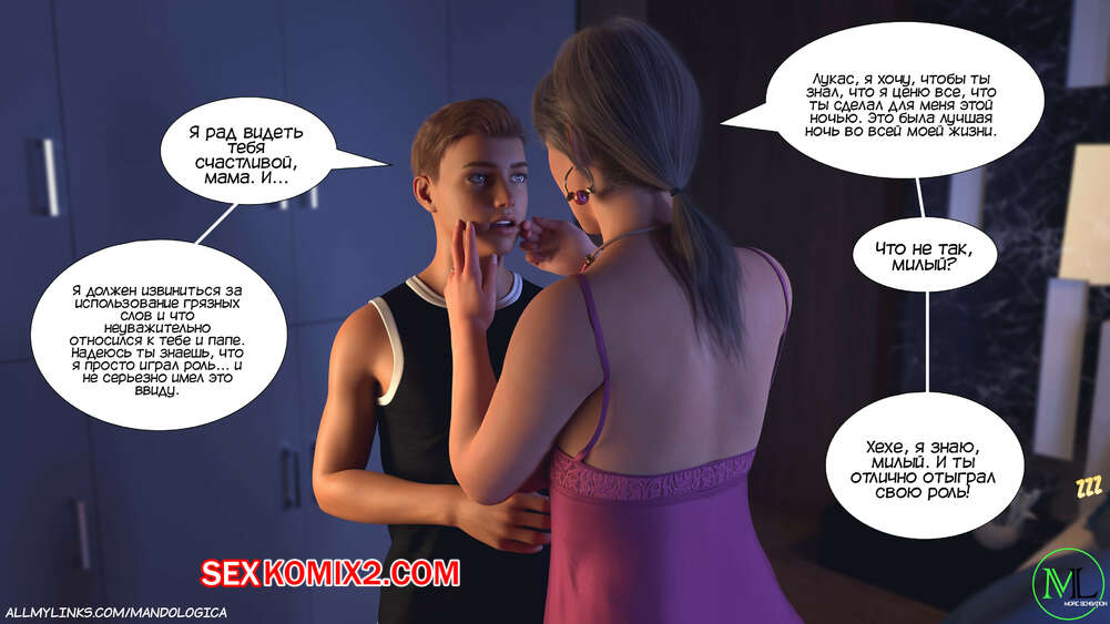 Порно комикс Разрушение границ. Часть 6. Breaking Boundaries. MandoLogica Адрианна очень возбужден и хочет отведать на вкус сперму своего сына. Милфа уложила Лукаса на кровать и стала тереться своей пизденкой о его член, от чего парень быстро кончил.
