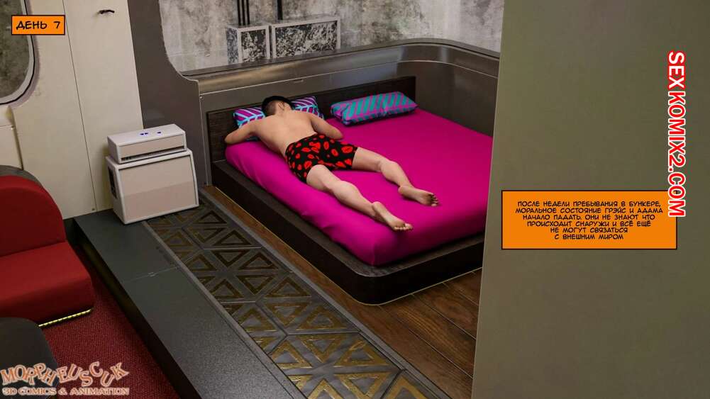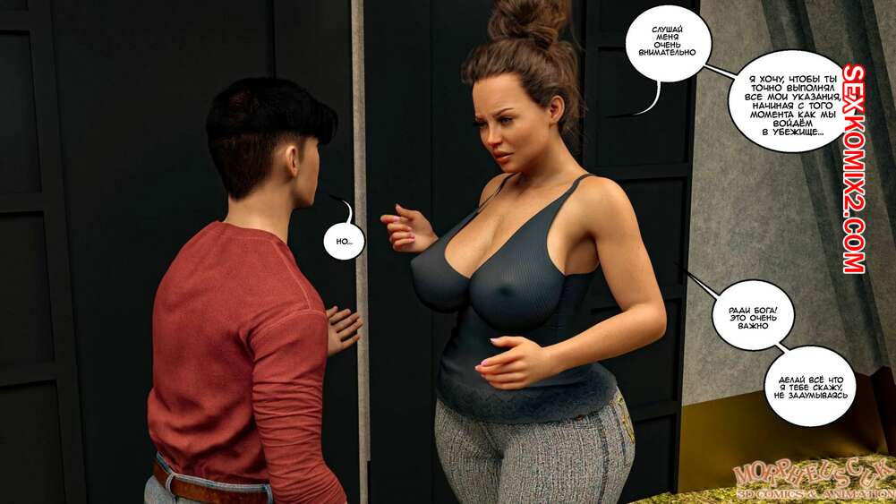 Порно комикс Убежище. Часть 1. Shelter. Morpheuscuk. Молодой парень с горячей милфой оказались в убежище, где они остались почти без одежды. Красотка заметила возбуждение парня и не смогла устоять перед соблазном потрахаться с ним.