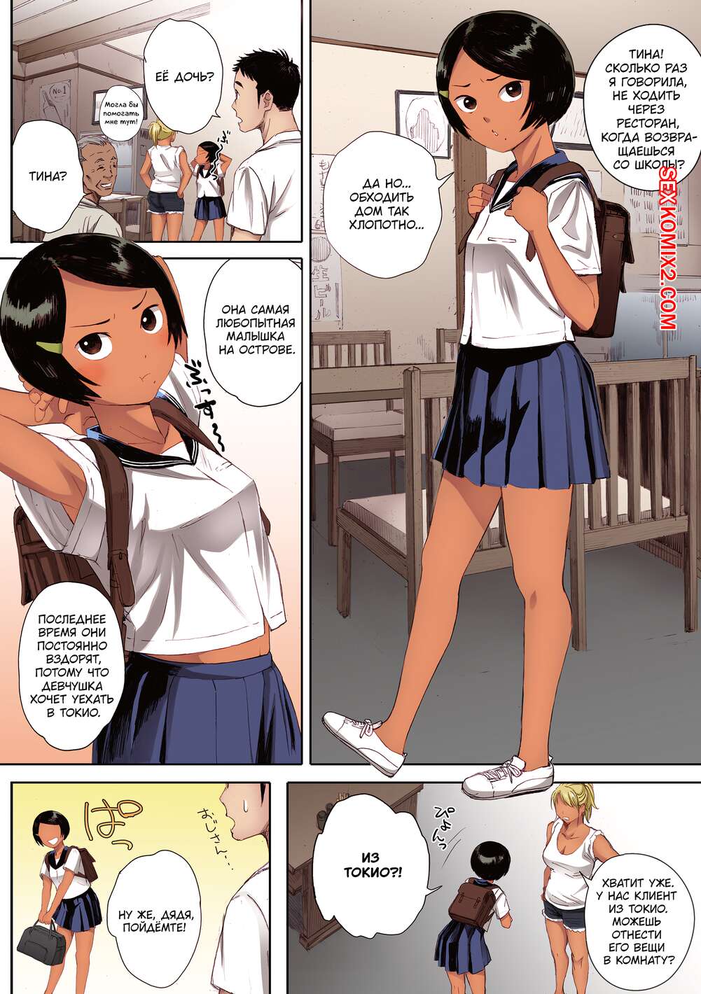Порно комикс Остров Улыбки. Kansai Orange Горячие красотки живут на острове и любят трахаться. Девушки раздеваются перед парянми и сосут их большие хуи, после чего дают им себя хорошенько выебать, получая огромное удовольствие.