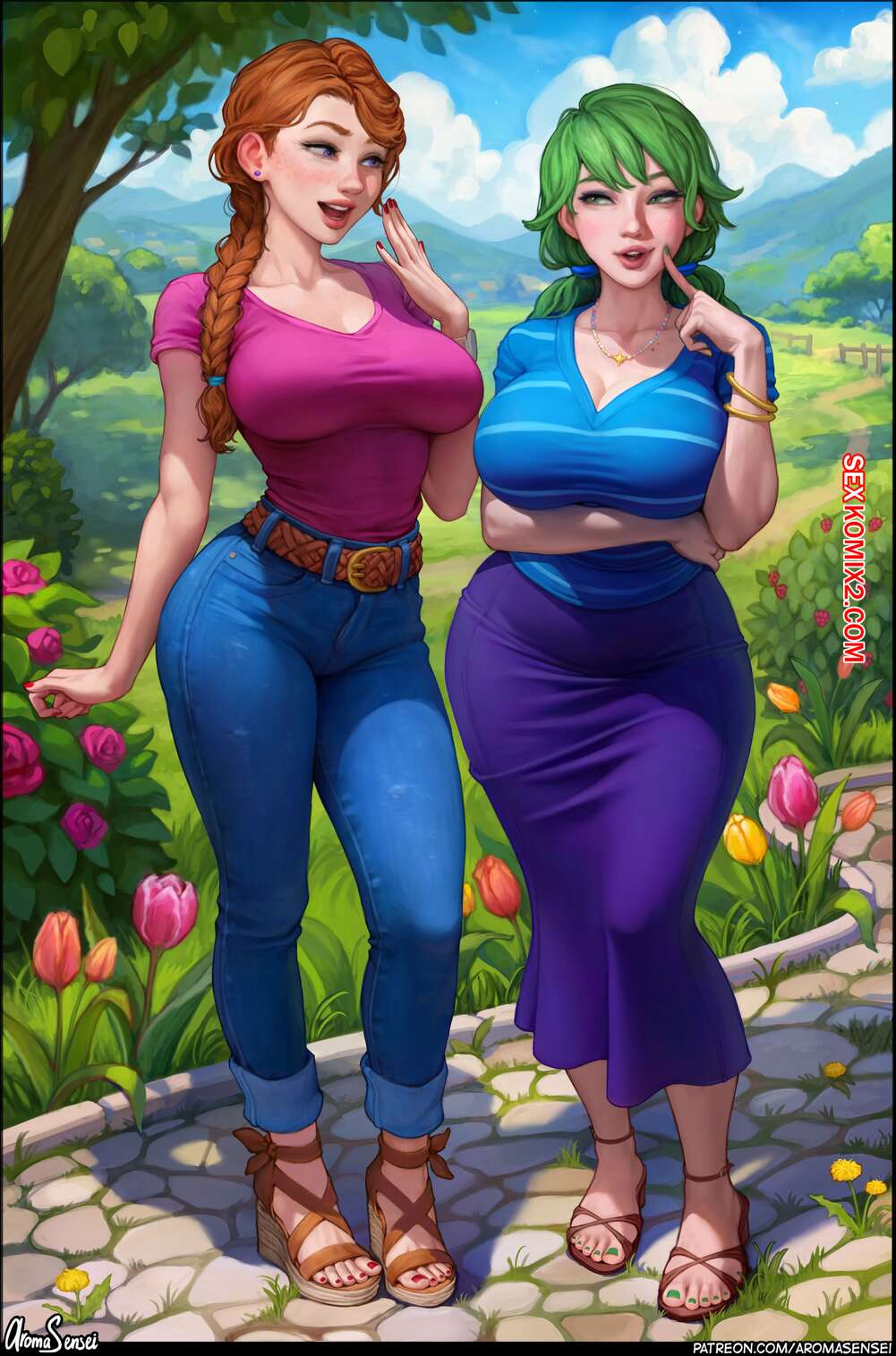 Порно комикс Голодные милфы. Hungry Milfs. Aroma Sensei Молодой парень приехал в деревню работать фермером. Две горячие милфы позвали его прогуляться в лесу, где они отсосали его хуй. Затем рыжая красотка пригласила парня на ужин, где дала ему себя выебать.