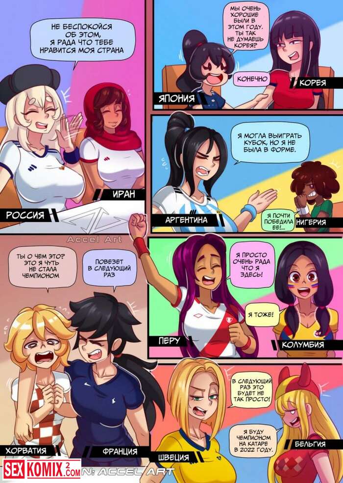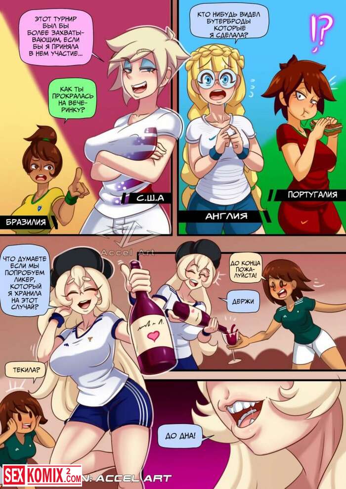 Порно комикс Чемпионат Мира. После турнира, девушки из разных стран собрались за одним столом, выпили и устроили лесбийскую оргию.