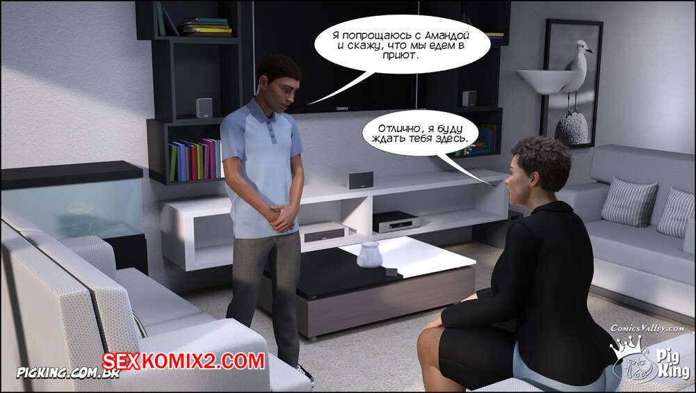 Порно комикс Аманда. Часть 37. Amanda. CrazyDad3D Директор приюта Оливия Уильямс приехала к Аманде, чтобы поговорить о биологической матери Ричарда. Она все рассказала Аманде и парню, после чего он решил встретиться с мамой.