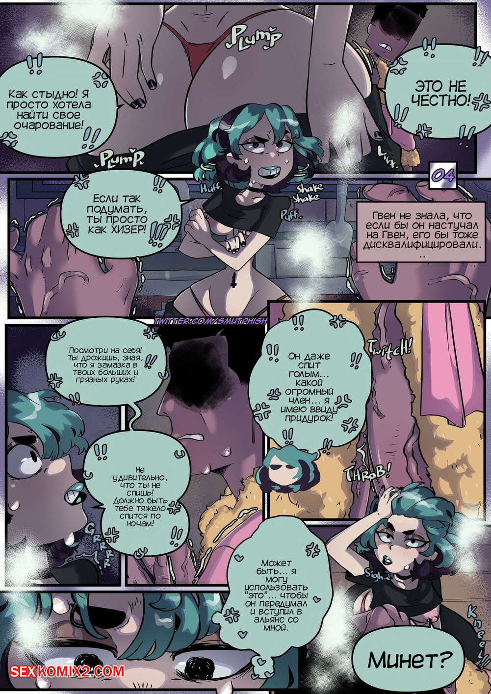 Порно комикс Остров возбуждения. Total Horny Island. SmutPhish Горячая красотка пробралась ночью в домик в лагере, но ее застал парень. Девушка боялась дисквалификации, поэтому она решила отвлечь парня и стала сосать его огромный хуй.