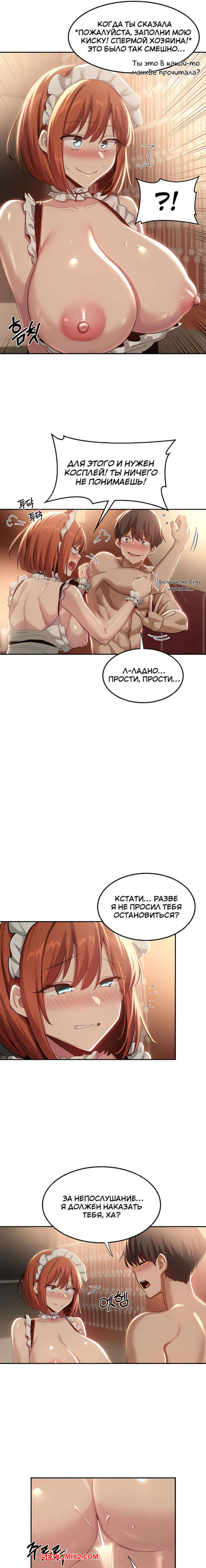 Порно комикс Сексуальное обучение. Часть 78 и 79 и 80. Sextudy Group Сексуальная брюнетка надела костюм горничной, чтобы порадовать своего дружка. Девушка возбудила парня и отсосала его большой хуй, после чего дала ему себя выебать.