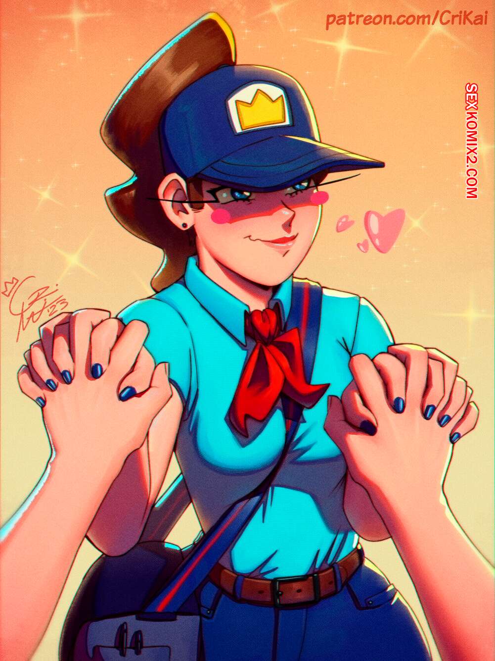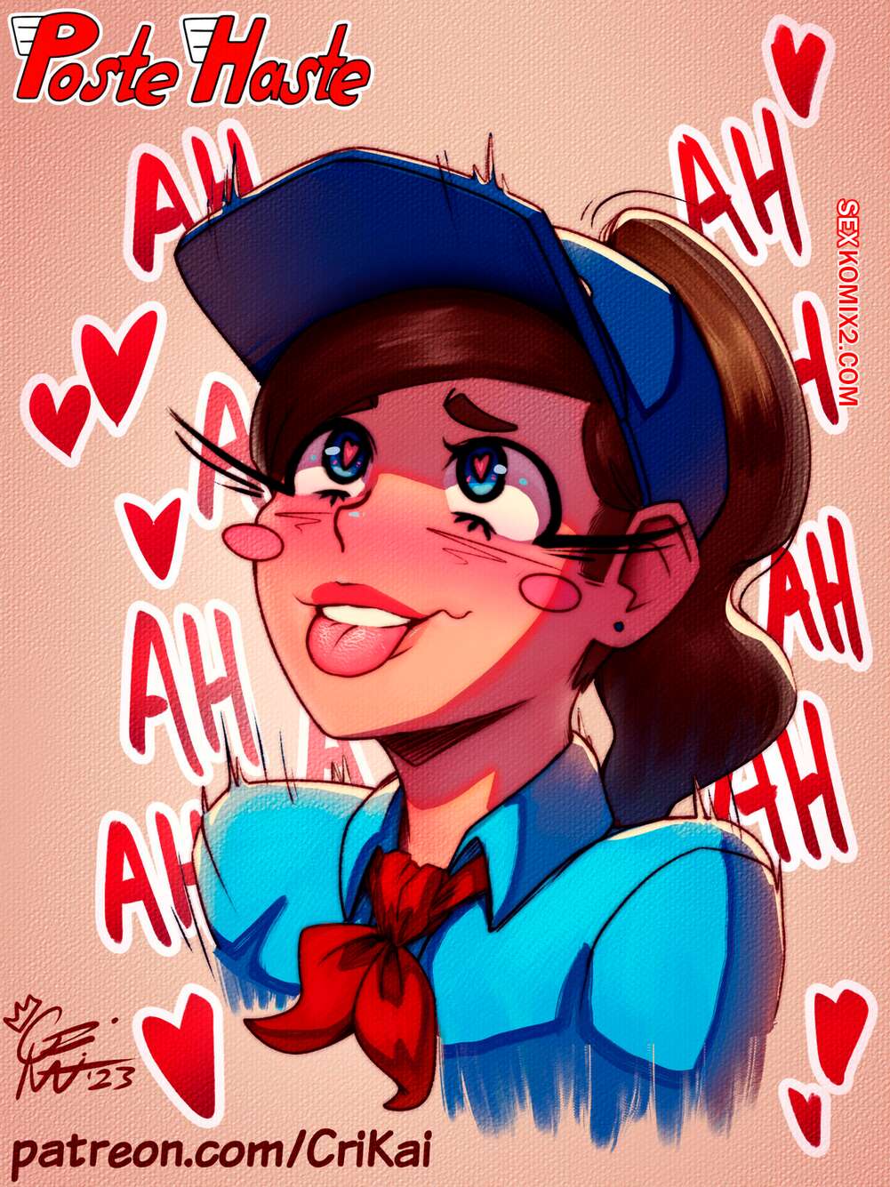 Порно комикс Почтовая спешка. Poste Haste. CriKai. Подборка картинок с горячей сексуальной брюнеткой почтальоншой. Красотка примеряет различные наряды, демонстрируя свое шикарное тело и лаская свою пизденку с помощью игрушек.
