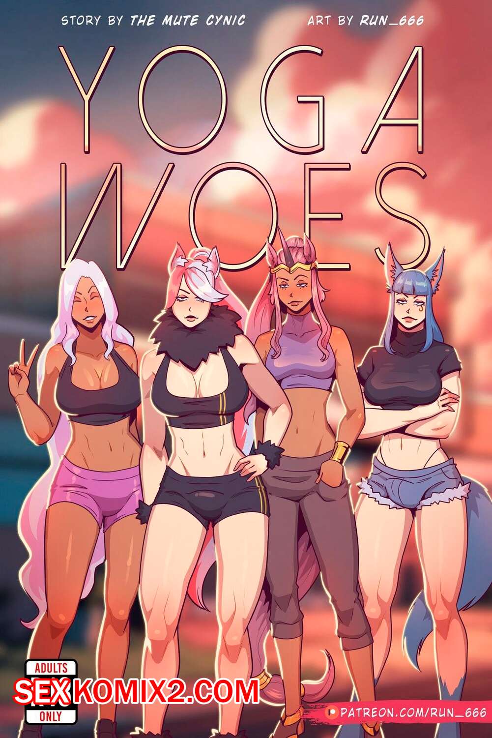 Порно комикс Проблемы с йогой. Yoga Woes. Run 666 Горячие подруги пришли заниматься йогой. Девушки были очень возбуждены и решили повеселиться. Красотка разделась и отсосала большой хуй подруги, после чего дала ей выебать свою задницу.