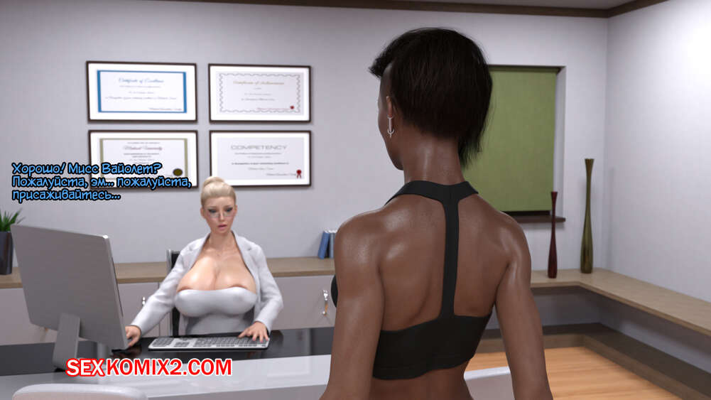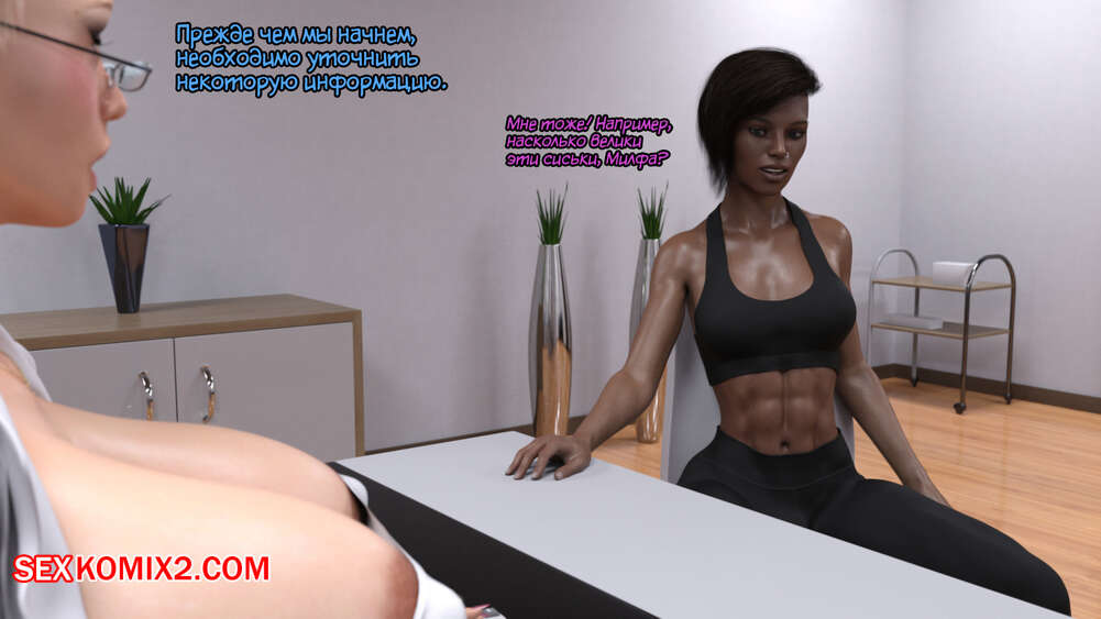 Порно комикс Донорство спермы. Sperm Donation. Serge3dx Темнокожая брюнетка с большим хуем пришла сдавать сперму на донорство. Милфа медсестра стала ей помогать кончить. Она встала на колени и отсосала большой хуй пациентки, после чего дала ей себя выебать.