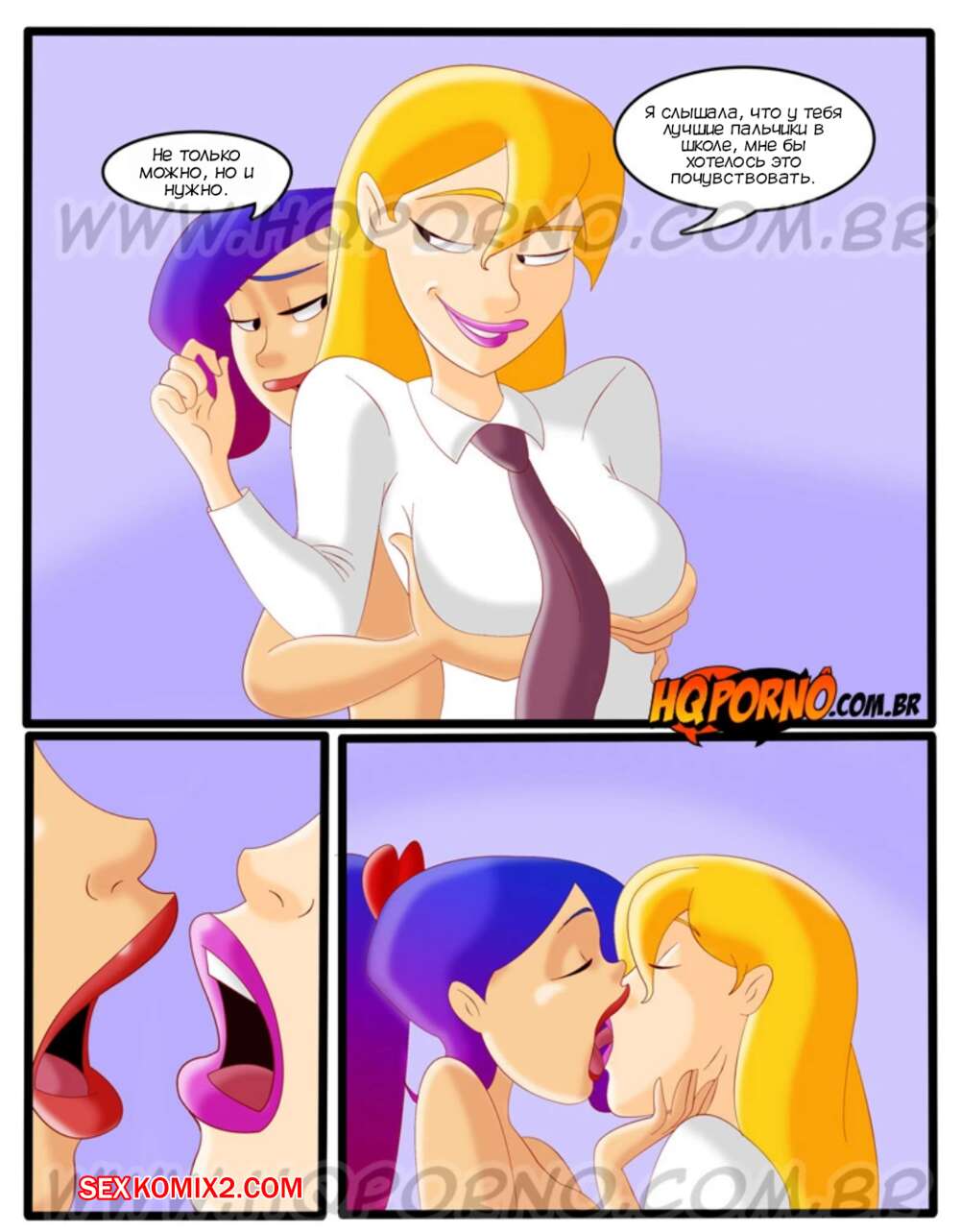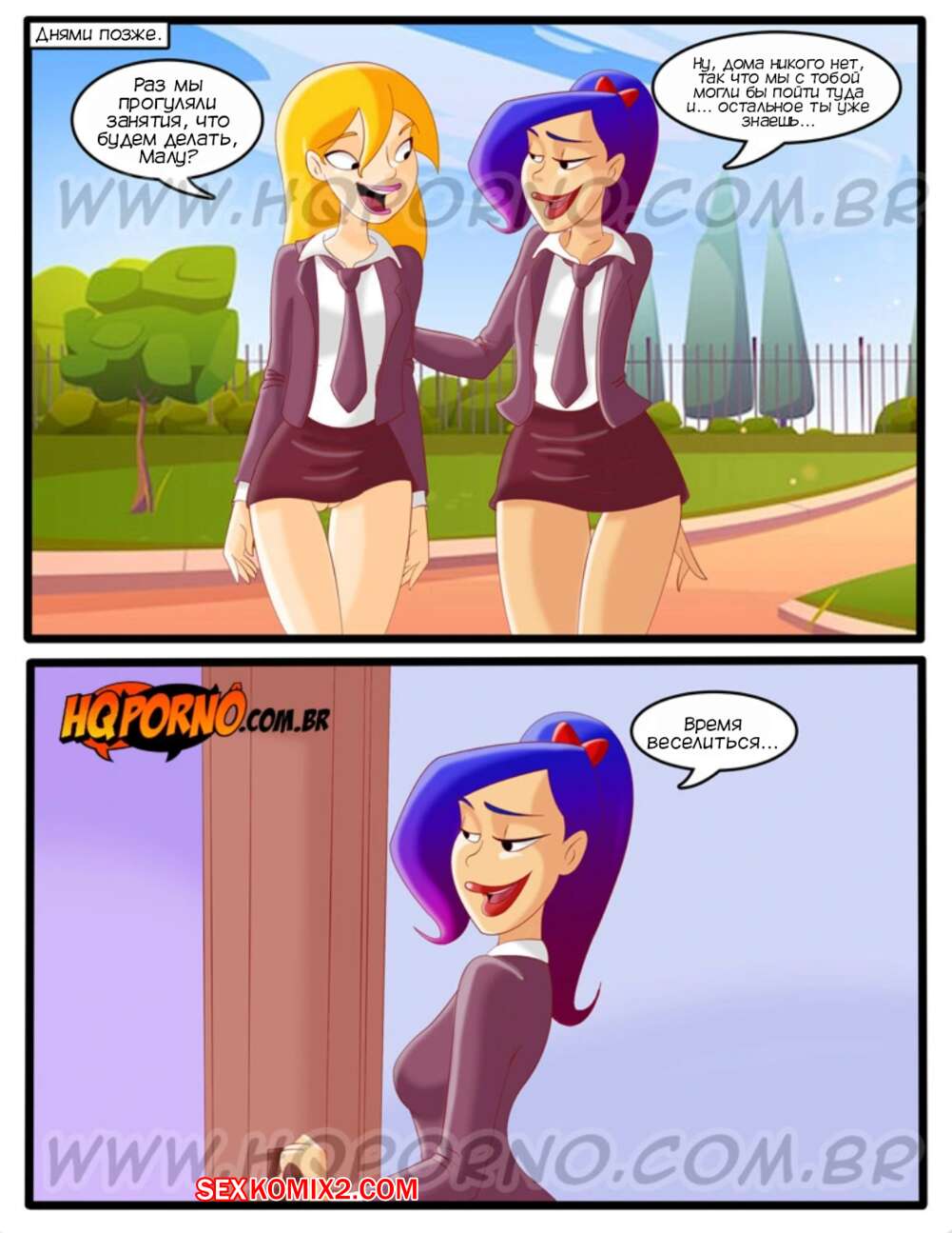 Порно комикс Новая нифоманка. Часть 2. Доминатрикс. Novinha Ninfomaniaca. HQporno Две горячие подруги прогуляли школу и отправились домой к Малу, чтобы повеселиться. Красотки разделись и стали ласкать друг дружку, но их спалила девушка отца Малу, которая решила преподать им уроки грубого секса. Новая нифоманка. Часть 1. Novinha nifomaniaca. HQporno