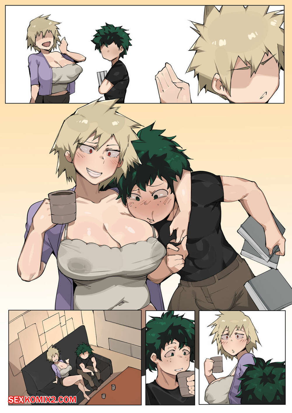 Порно комикс Академия. Митсуки и Деку. Mitsuki x Deku. Elzx Горячая блондинка была очень возбуждена и решила повеселиться со своим дружком Деку. Она разделась и отсосала его большой хуй, после чего дала ему себя выебать и заполнить свою пизденку спермой.