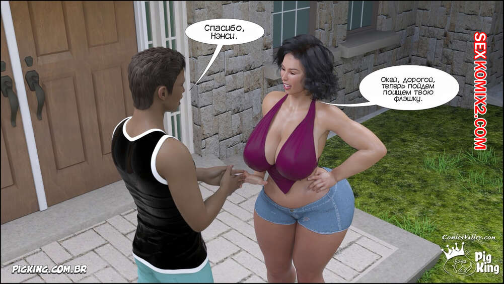 Порно комикс Помощь мамы. Часть 58. Moms Help. CrazyDad3D Горячая милфа Нэнси пригласила к себе домой Оуэна и решила повеселиться с парнем. Красотка разделась и отсосала большой хуй парня, после чего дала ему себя хорошенько выебать.
