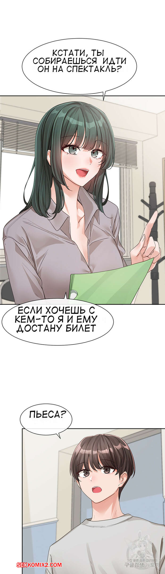 Порно комикс Театральный клуб. Часть 134. Circles. Theater cociety Сексуальная брюнетка пригласила парня провести день вместе с ней. Они сходили вместе на репетиции, после чего парень пригласил подругу перекусить, так как был очень голоден.
