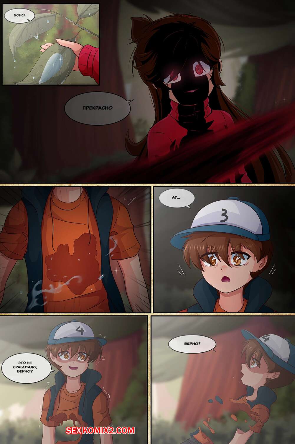 Твой отчим2024-07-18По спойлеру могу сказать что sekas будет с оригинальным диппером так как у него на кепке ёлка, а не цифра. Ну или же автор упоролся и перепутал кепки