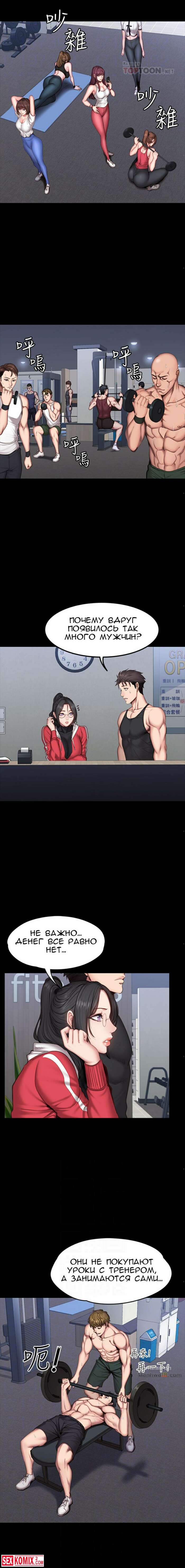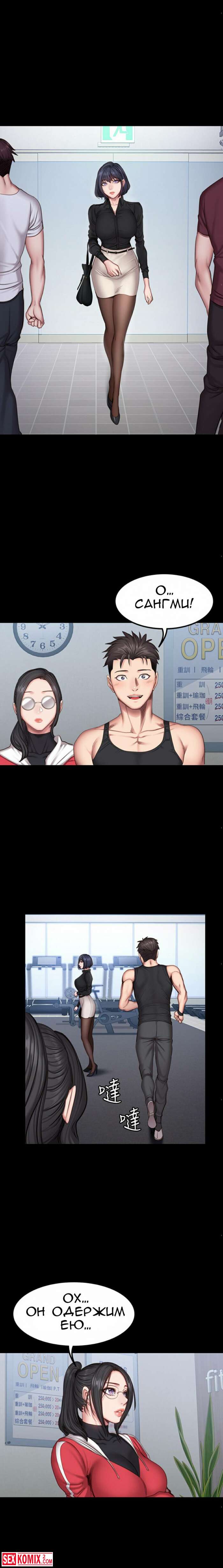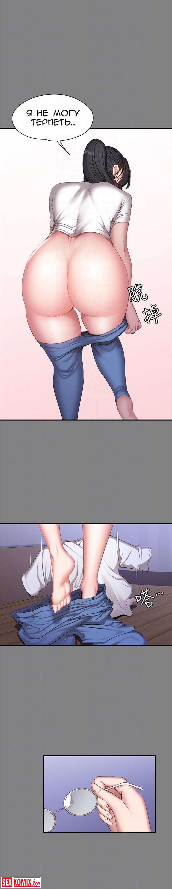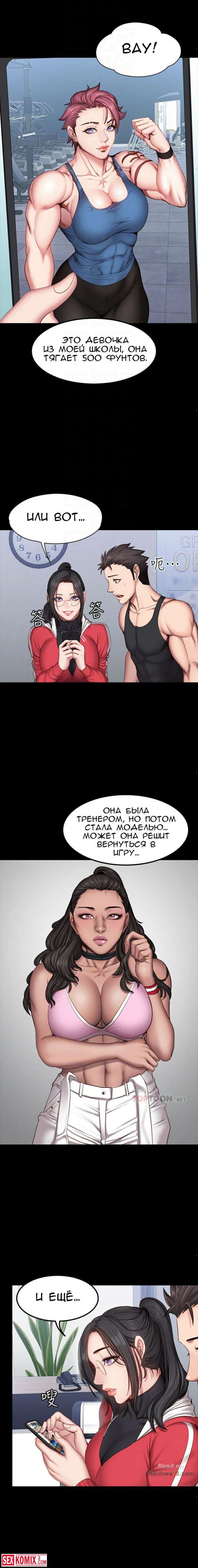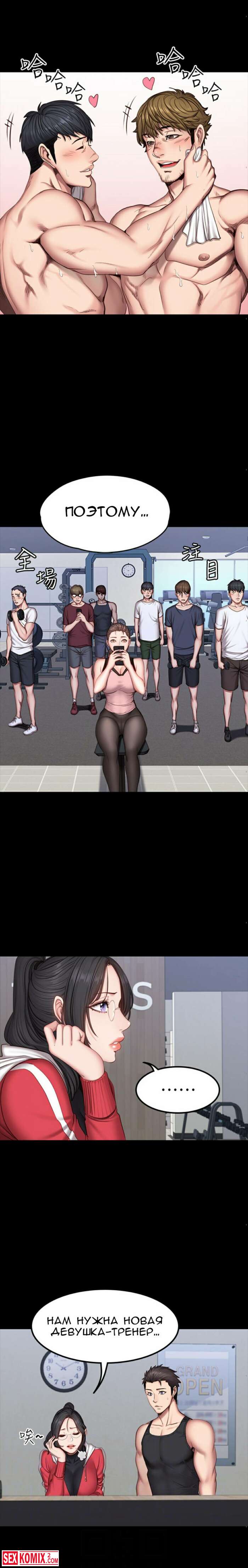 Порно комикс Фитнес. Части 26 и 27. Пока парень спал, брюнетка сняла с него штаны и сделал минет. Её не остановила его девушка, которая лежала рядом.