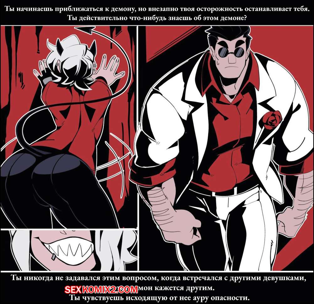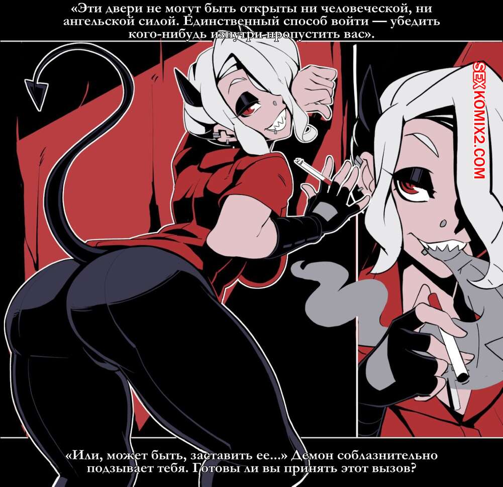 Порно комикс Безумие Хеллтакер. Часть 2. Helltaker Парень был очень возбужден и решил повеселиться со своей сексуальной подругой. Он раздел девушку и дал ей отсосать свой большой хуй, после чего хорошенько ее выебал.