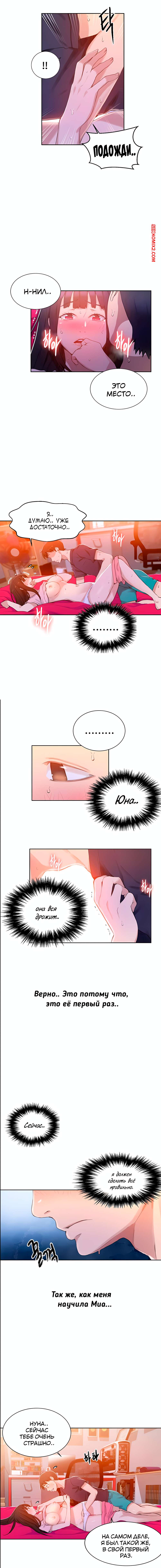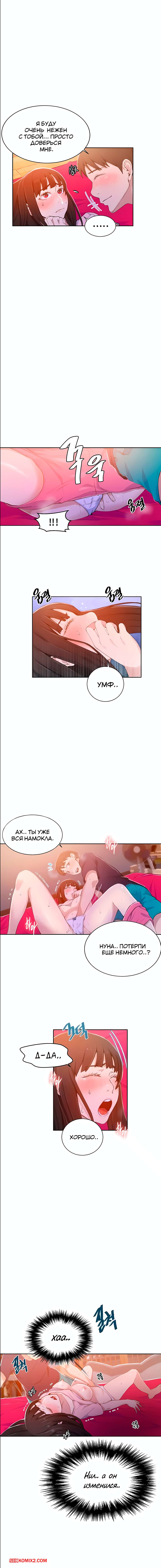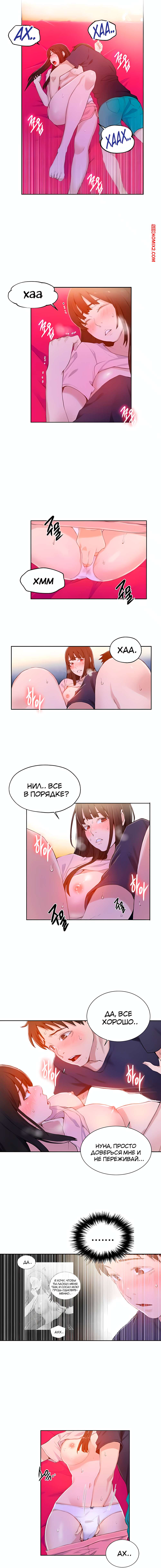 Порно комикс Тайное обучение. Без цензуры. Части 21 и 22 и 23. Secret Class Парень был очень возбужден и решил повеселиться с сексуальной брюнеткой. Он раздел ее и уложил на кровать, после чего стал сосать ее большие сиськи, доставляя девушке огромное удовольствие.