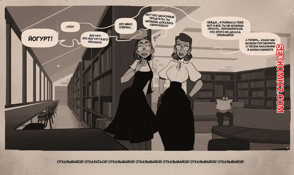 Порно комикс Библиотека. Часть 2. The Library. InCase. Девушки ежедневно ходят в библиотеку, чтобы уединиться там и повеселиться. Красотки раздеваются и сосут большие хуи своих подруг, после чего девушки хорошенько ебутся.
