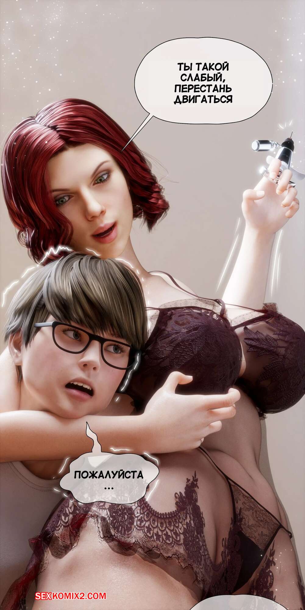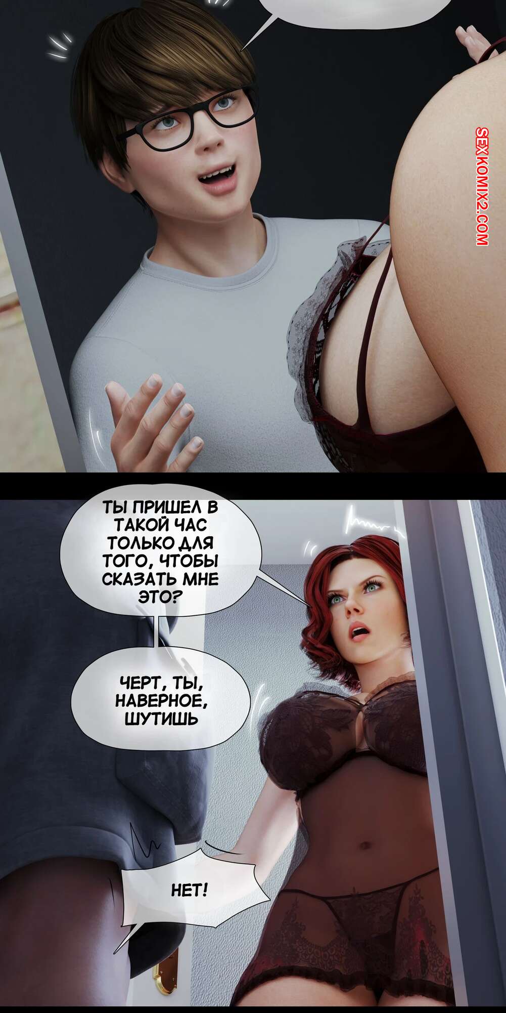 Порно комикс Моя соседская вдова. Часть 4. My Neighbors Widow. Rose Blue 3D. Горячая рыжая милфа пришла в комнату к молодому парню в одной ночнушке и моментально возбудила его своим шикарным телом. Вскоре красотка стала сосать большой хуй парня и дала ему себя выебать.