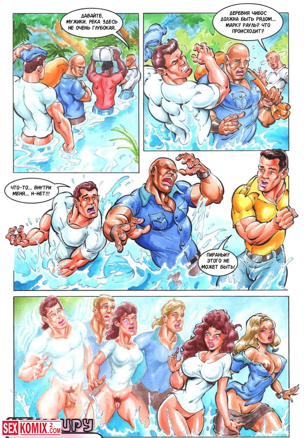 Порно комикс Кандиру. Мужчина искупался в реке, он не знал, что она проклята и превратился в женщину. Позже пришли местные аборигены и она им приглянулась.