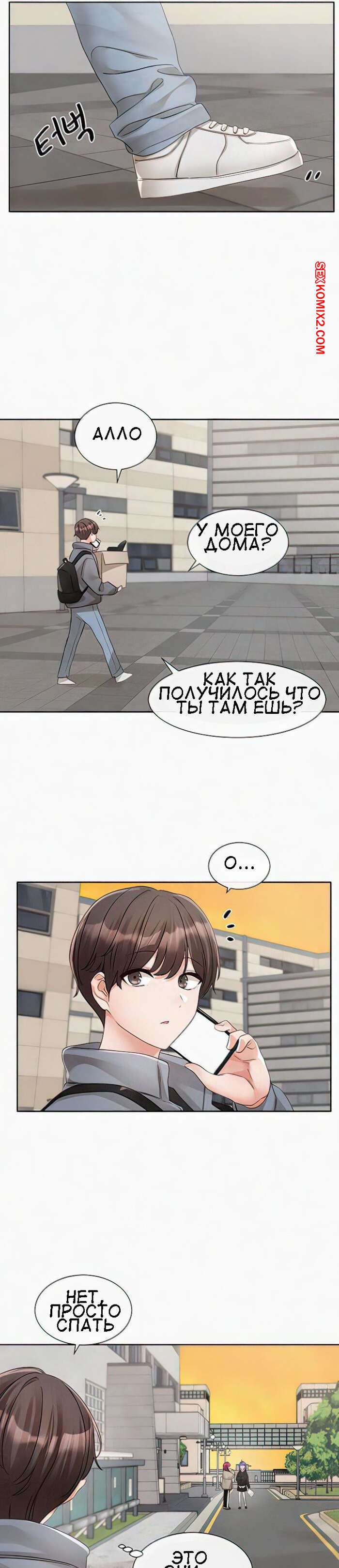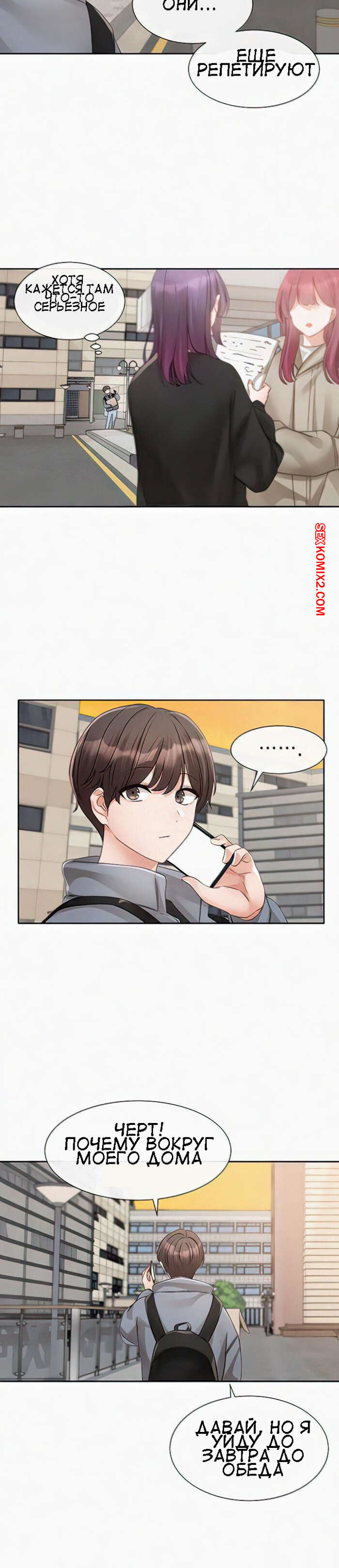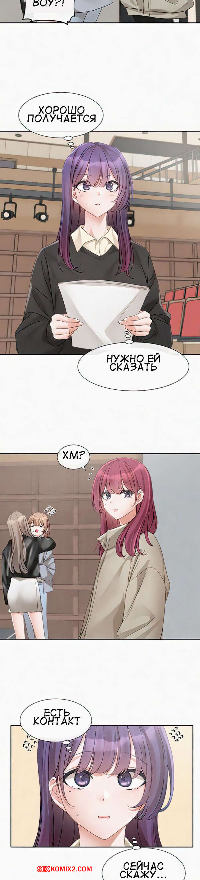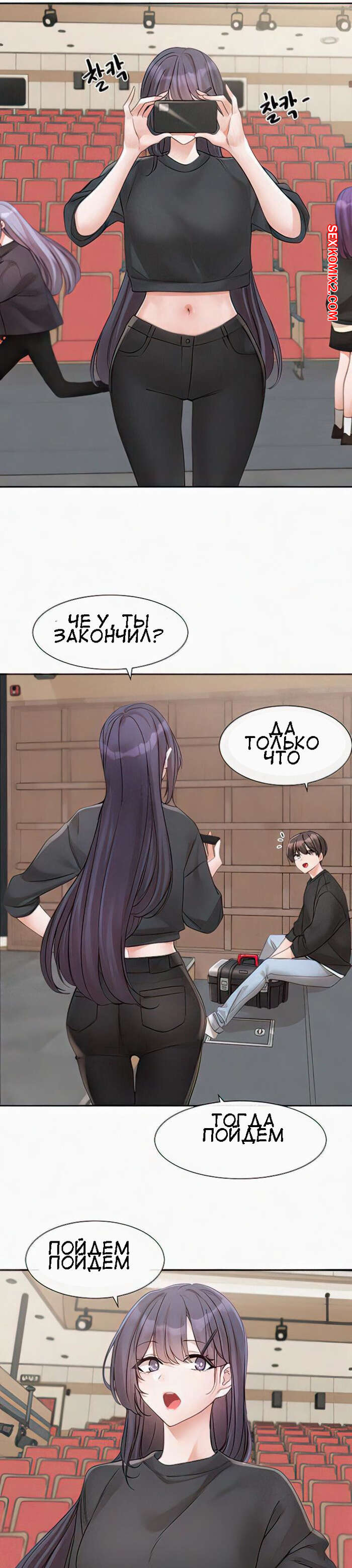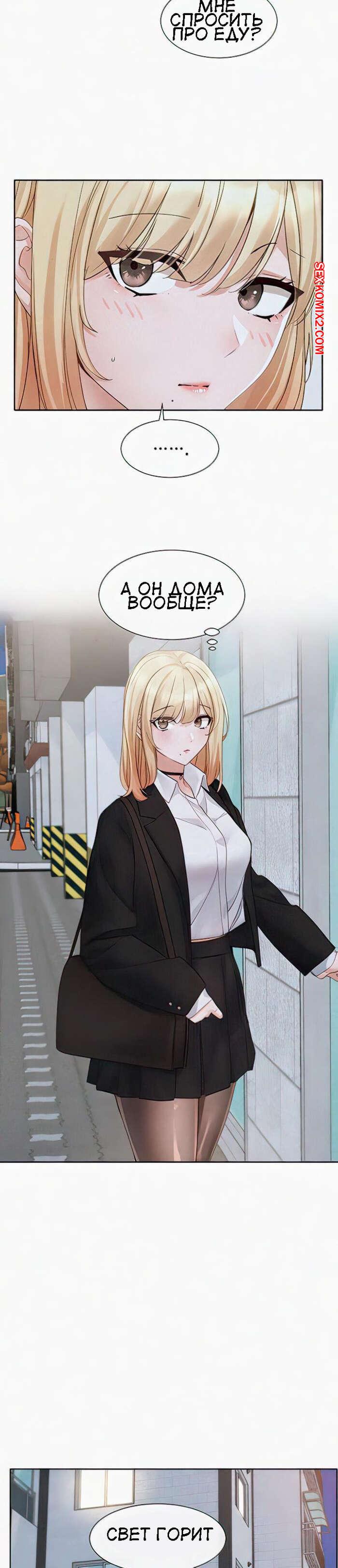 Порно комикс Театральный клуб. Часть 146. Circles. Theater cociety Сексуальная блондинка отправилась домой к парню. Собравшись с мыслями, она наконец постучала в дверь, но дверь ей открыл совсем не известный ей молодой парнишка.