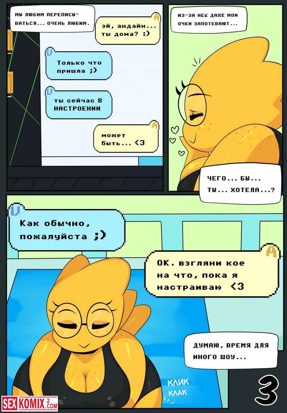 Порно комикс Отношения на малом расстоянии. Андертейл. Виртуальный секс двух девушек, с помощью современных технологий даже не нужно встречаться в реале.