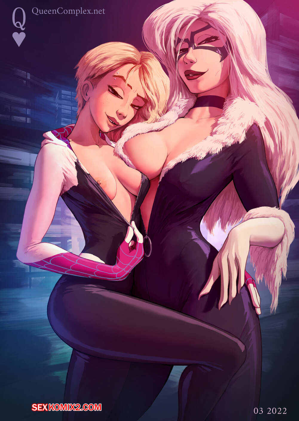 Порно комикс Спайдер Гвен. Spider Gwen. QueenComplex. Горячая блондинка Гвен обожает трахаться. Красотка раздевается и демонстрирует свое шикарное тело, после чего занимается страстным сексом со своими дружками.