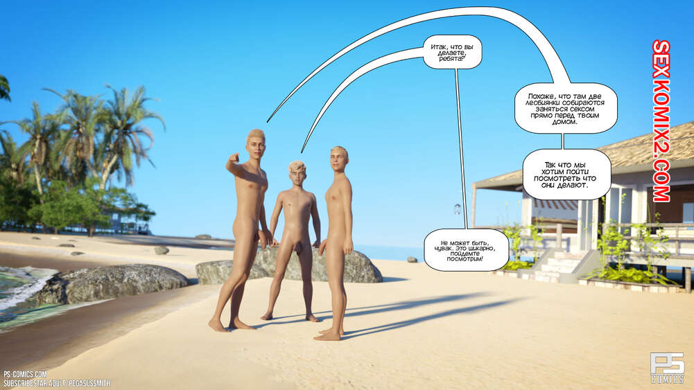 Порно комикс Нагишом. Нудистский курорт. Часть 19. Au Naturel. Pegasus Smith Пока Бренди и Келли веселятся наедине, горячая милфа Айанна решила повеселиться с Диланом, чтобы он не помешал маме и тете. Красотка предложила парню пригласить к ним Камиллу, чтобы трахнуться всем вместе.