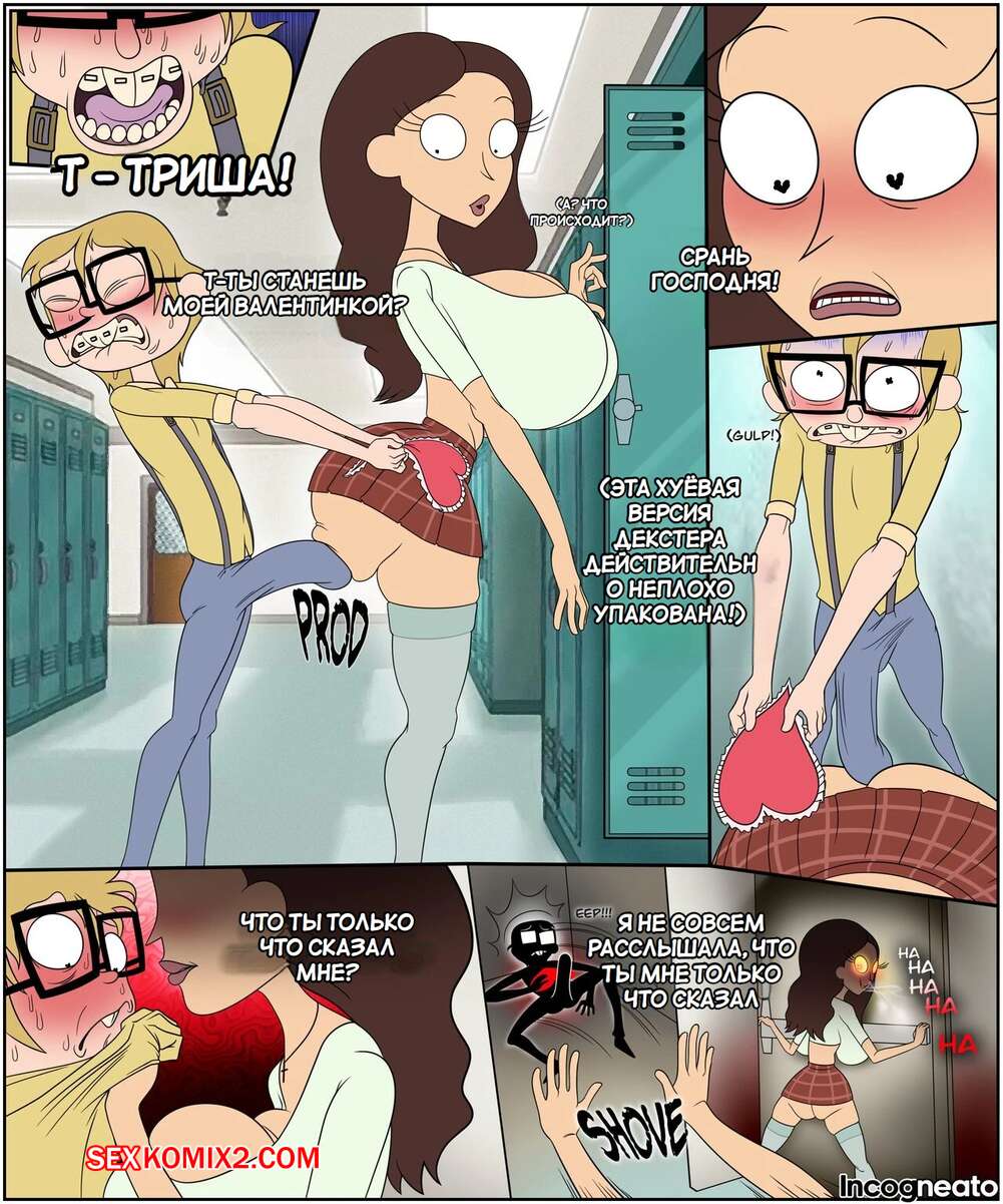 Порно комикс Рик и Морти. Валентинка Триши. Tricias Valentine. Incogneato. Молодой парень влюблен в сексуальную брюнетку из своей школы. Он предложил ей стать его валентинкой, после чего красотка позвала его в уединенное место, чтобы с ним повеселиться.