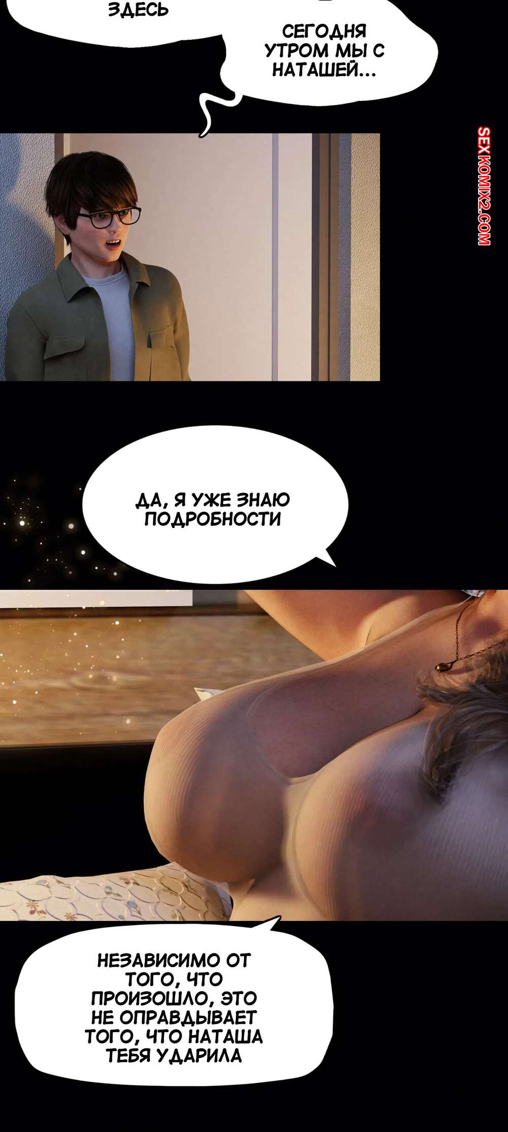 Порно комикс Моя соседская вдова. Часть 7. My Neighbors Widow. Rose Blue 3D. Молодой парень прогулялся с сексуальной девушкой и поздно вечером вернулся домой. Там он встретил на своей кровати сексуальную брюнетку, а на утро проснулся вместе с ней голым..