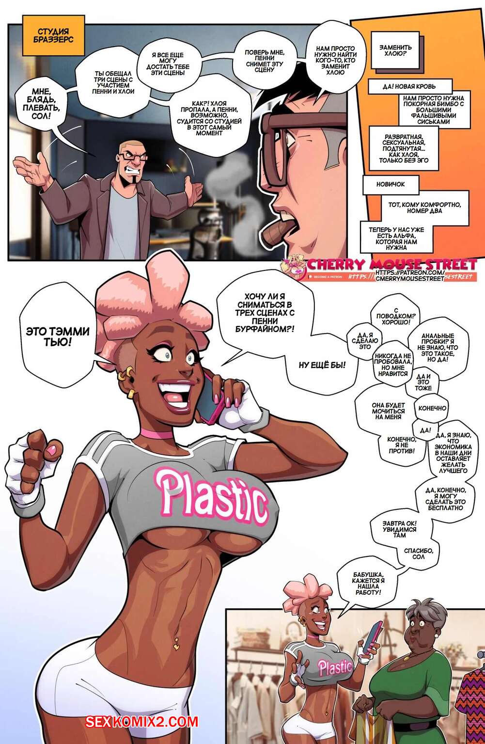 Порно комикс Тэмми Тью. Tammy Tew. Cherry Mouse Street Горячая темнокожая красотка обожает трахаться. Она встречается со своими дружками с большими хуями и хорошенько у них отсасывает, после чего дает им себя выебать во все дырочки.