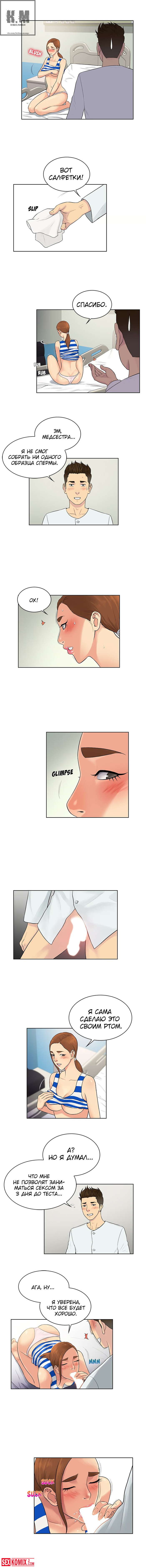 Порно комикс Стойкий парень. Части 12 и 13. Парень в больнице зря время не терял, он соблазнил молодую медсестру и трахает её в своей палате.