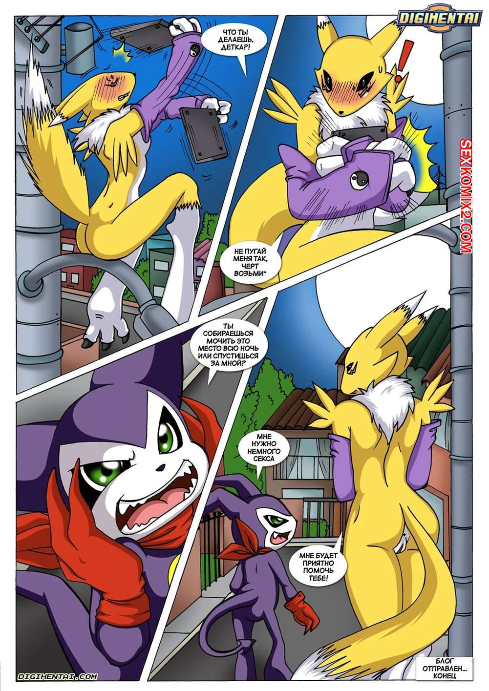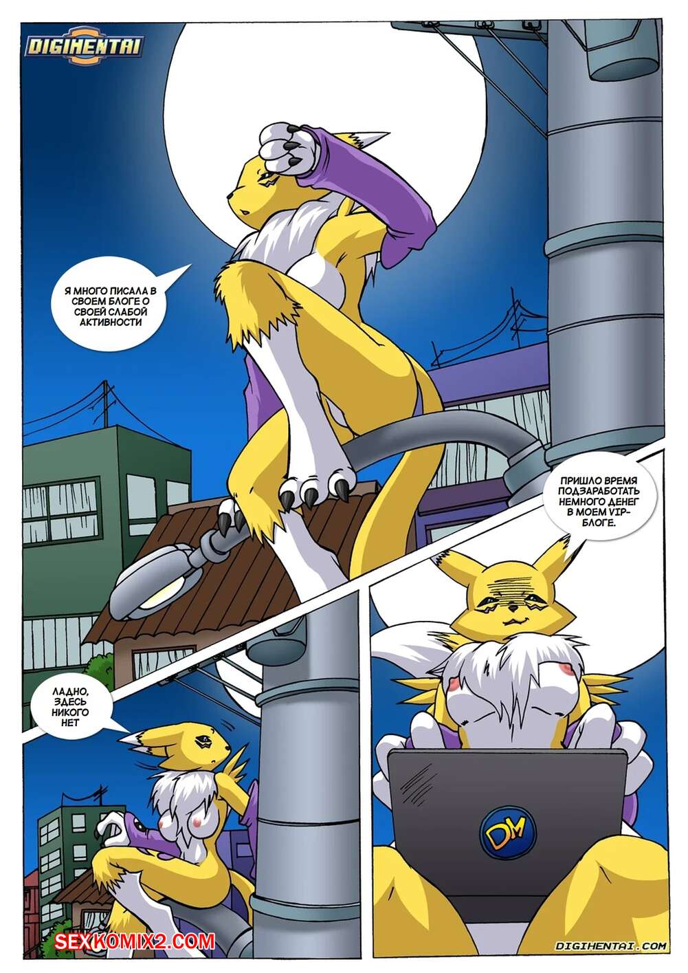 Порно комикс Digimon. Блог Ренамон. Renamons Blog. Palcomix Ренамон была очень возбуждена и решила повеселиться со своим дружком. Девушка разделась и стала сосать хуй парня, после чего дала ему выебать свою пизденку, пока за ними подглядывала рыжая девушка и дрочила.