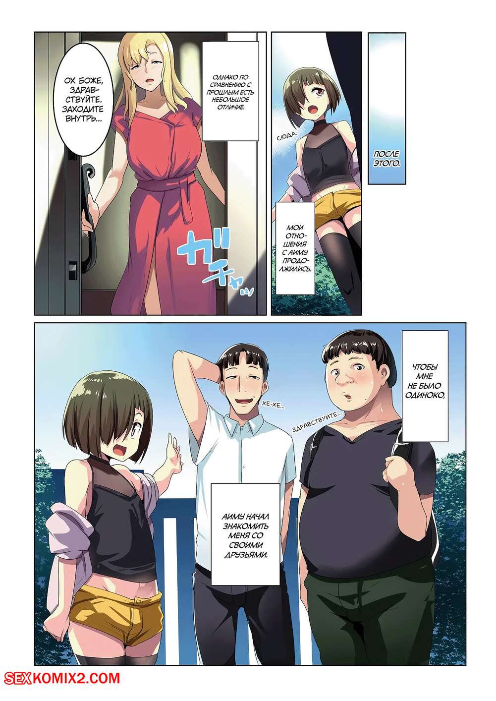 Порно комикс Маленький друг Аиму. Часть 1. Muneshiro Сисястая блондинка милфа без ума от большого члена молодого парня. Красотка раздевается и сосет большой хуй парня, после чего дает ему себя хорошенько выебать, получая огромное удовольствие.